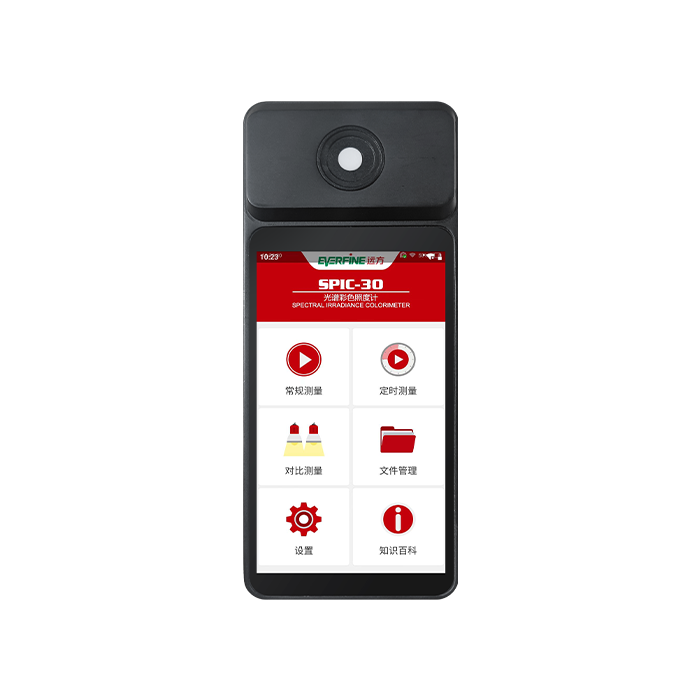 典型应用场景SPIC-500系列光谱彩色照度计拥有多项国际国内专利,集成专业智能配置,一键完成测量和分析,数据实时读取,无线传输,远程协同交流。专为舞台灯光设计,高强度,宽照度0.1lx-1000klx。主要特点一、分离式设计使测量更灵活探头和主机既可一体化测量,也可无线分离远程测量;探头可多角度、多场合灵活采样,测量更便捷。二、多项专利技术,用光谱法测量光色参数,不存在V(入)失匹配误差,测量精度高三、精密余弦校正和消杂光技术,更具专业性四、SPIC-500BW/BWH采用具有国际专利的SBCT技术,可实现0.01lx~1000klx宽动态范围的测量。(根据订单)五、超大触屏显示,独特的“即时读屏测量(ReadingwhileMeasuring,RWM)”技术,测量更智能精准集光谱测量、位姿感知和智慧显示于一体;光谱、辐射度、照度、色度等参数毫秒级智能测量分析,快捷高效。六、超长续航,大容量存储,智能无线互联技术实现高效现场测量与交互超20小时长续航,6G大容量存储;WIF1、蓝牙、USB等多种通讯方式,一键分享测试界面和报告。
