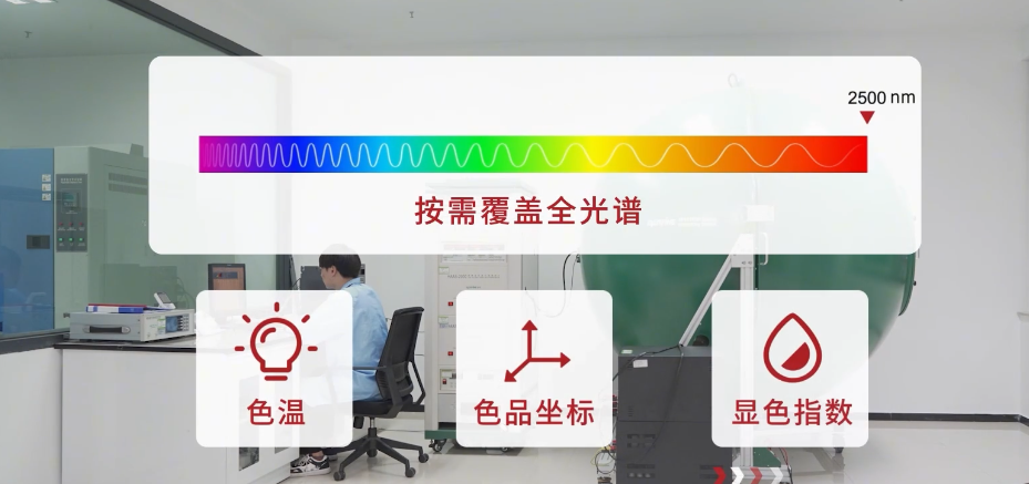 HAAS系列高精度光谱分析仪按需覆盖全光谱,可用于精准测量照明产品的可见光参数,如色温、色品坐标、显色指数等参数,并能实现紫外辐射安全评估和红外光谱测量,从源头确保每一颗灯的安全和舒适。