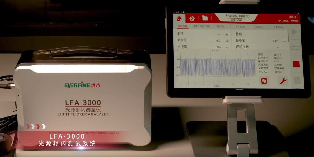 对于已安装完毕的现场验收,可以使用更为便捷的手持式照度计SPIC-500系列,得到工作面照度、人眼垂直m-EDI等参数;使用LFA系列频闪测试系统,可满足各类频闪标准测量;LGM-300则能轻松准确评估光环境中的眩光。