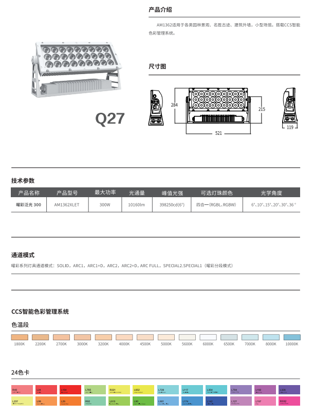 AM1362适用于各类园林景观、名胜古迹、建筑外墙,小型场馆。搭载CCS智能色彩管理系统。