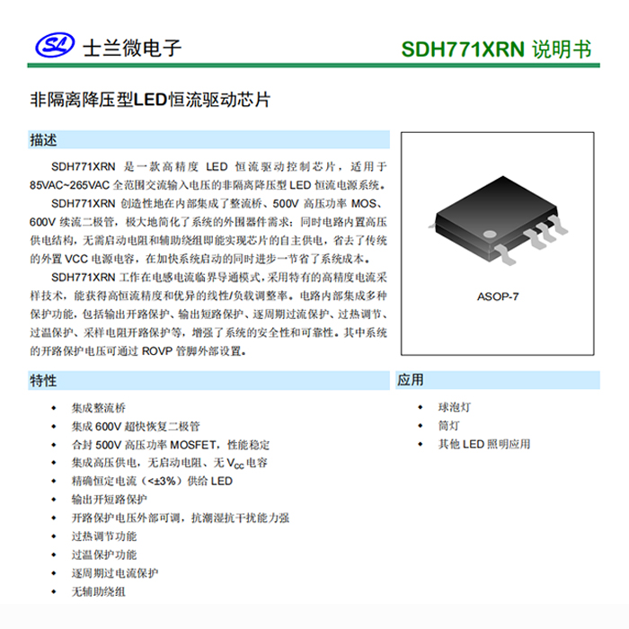 • 应用 驱动电源、筒灯、球泡灯、射灯、路灯、泛光灯、工矿灯、投光灯、其他户外