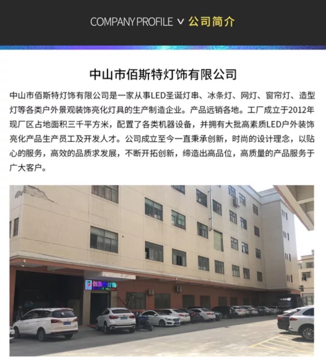 中山市佰斯特灯饰有限公司专业生产:LED户外工程灯串,网灯,窗帘灯,造型灯。