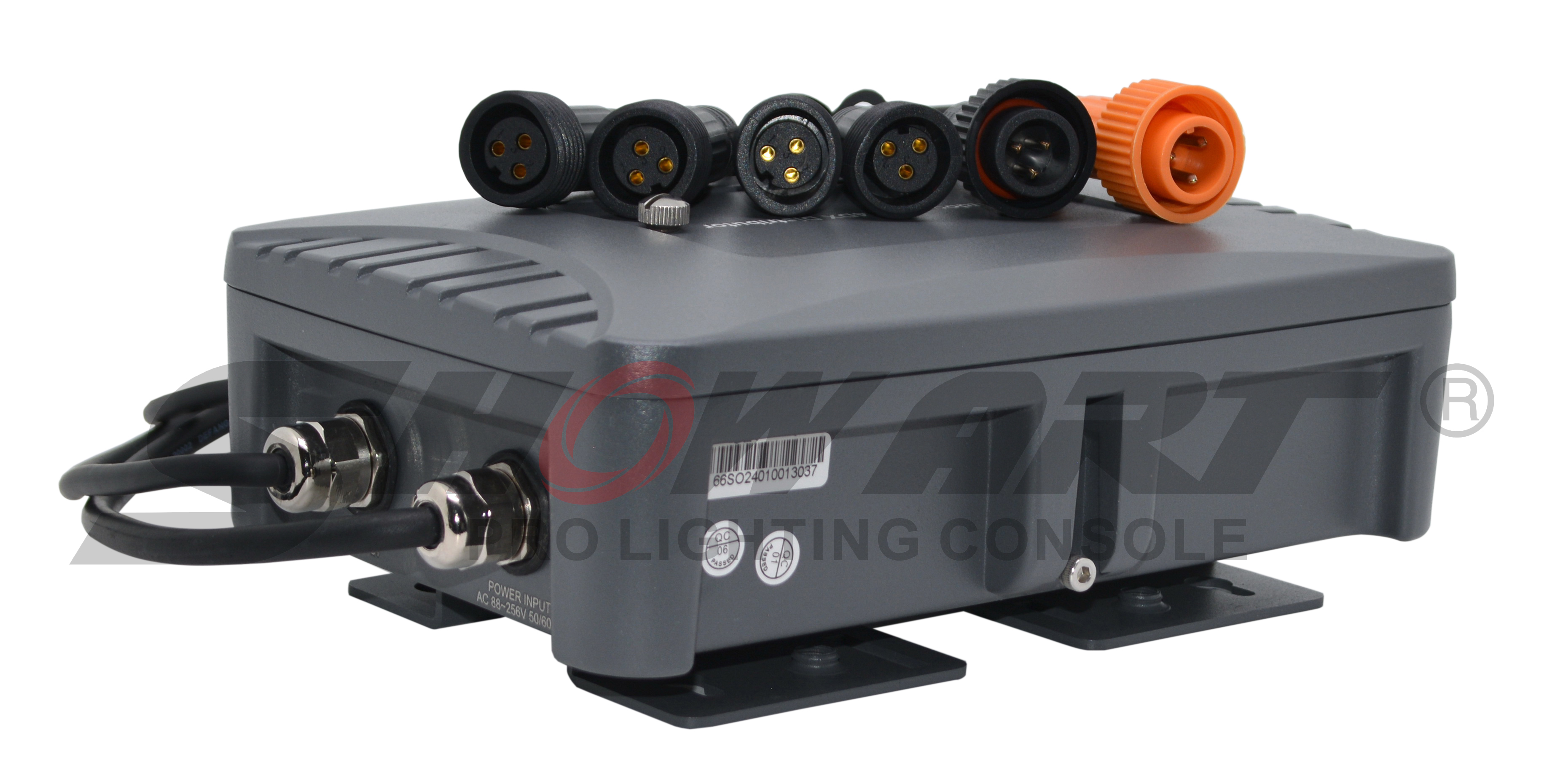 * 每组信号有一个防水卡侬接头,每路DMX输出口是一个独立的驱动器,设备带指示灯