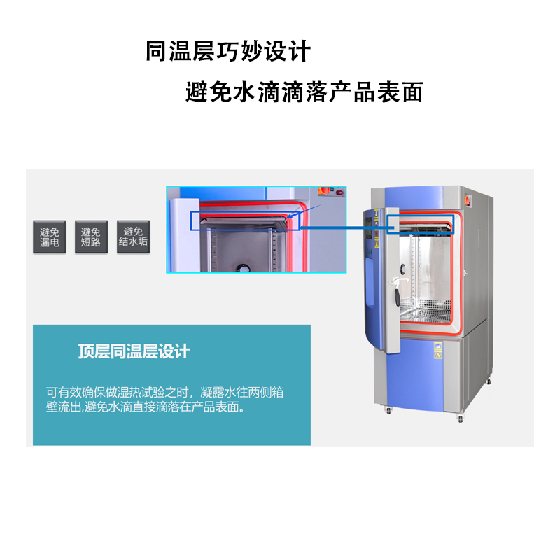 7、 工作室底部采用引流槽设计,防止蒸气凝结,最大限错度保护测试工件;
