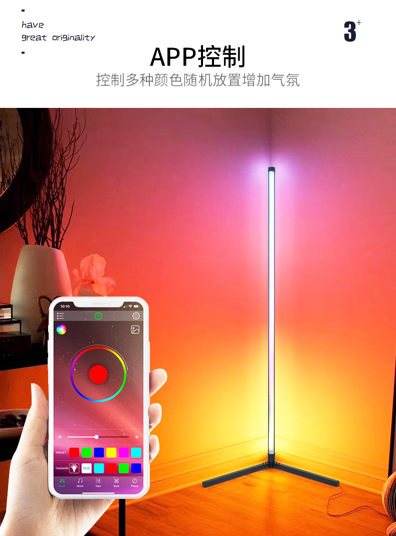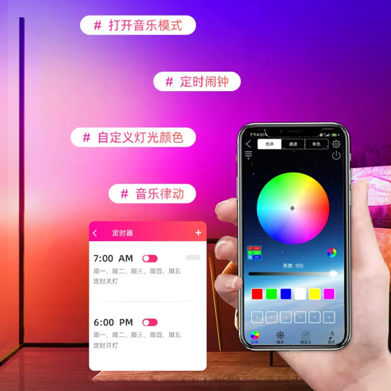 LED氛围落地灯蓝牙APP智能墙角灯RGB幻彩音乐氛围灯