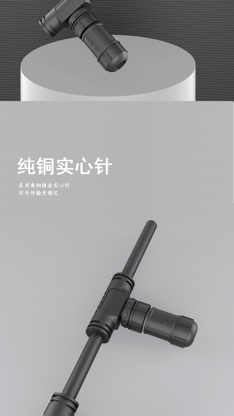 T型M16-3P公母防水连接器组装对接路灯型号连接