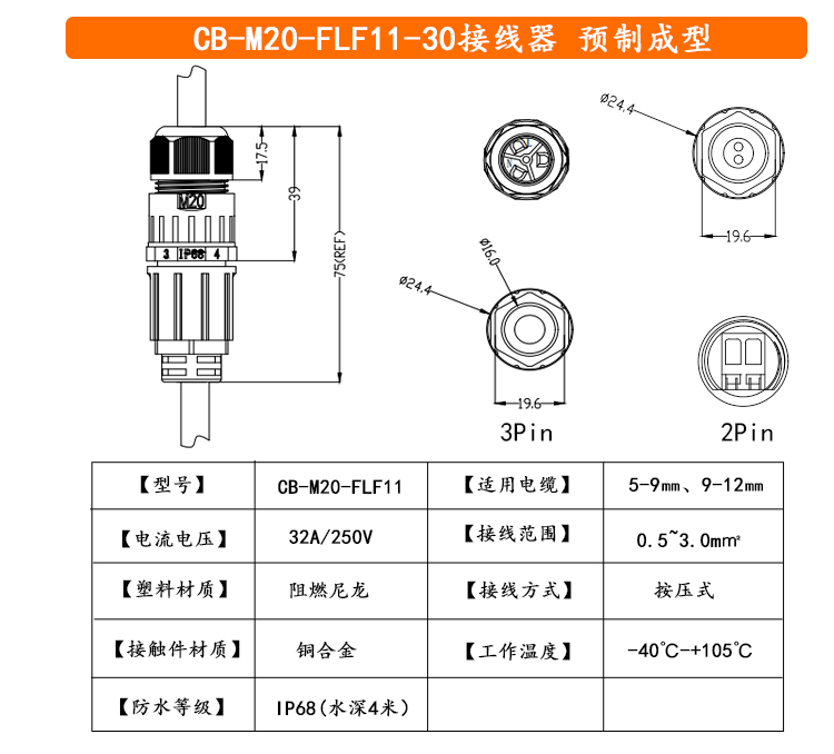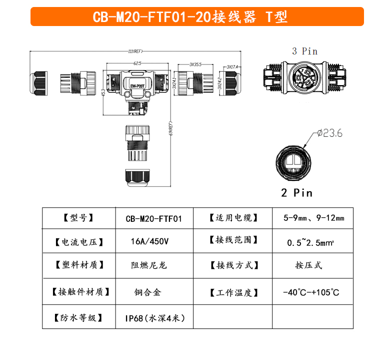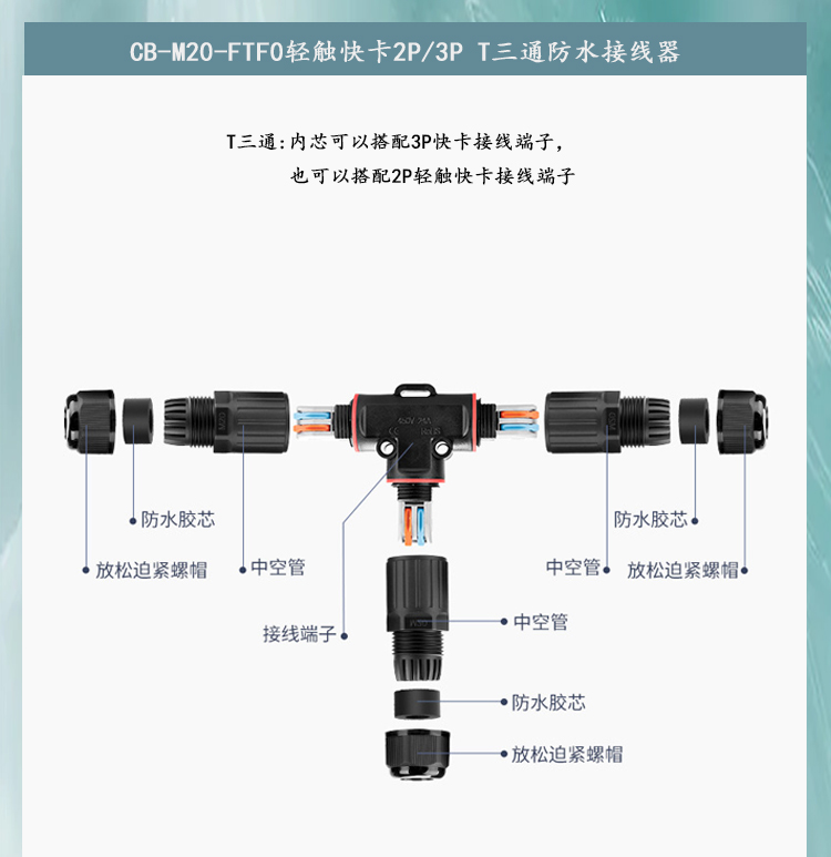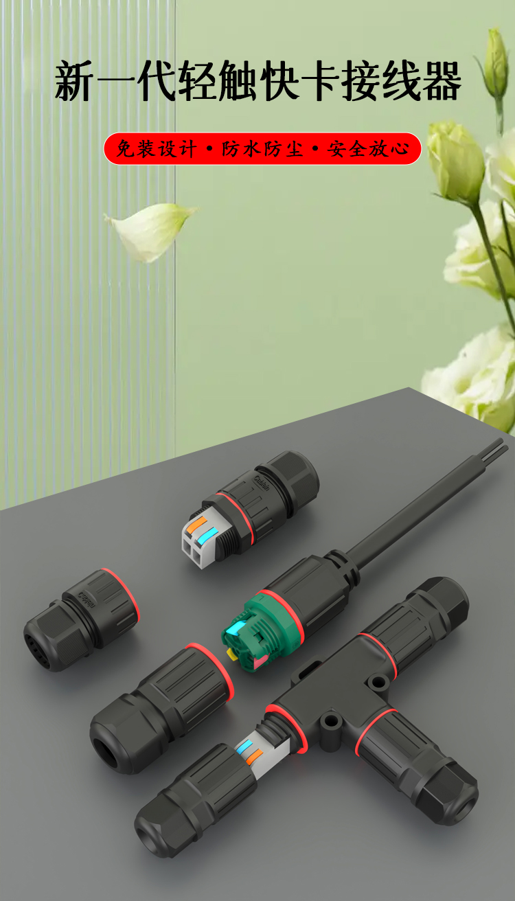 T三通快卡直通免工具免焊接三芯电线防水连接器植物灯连接器