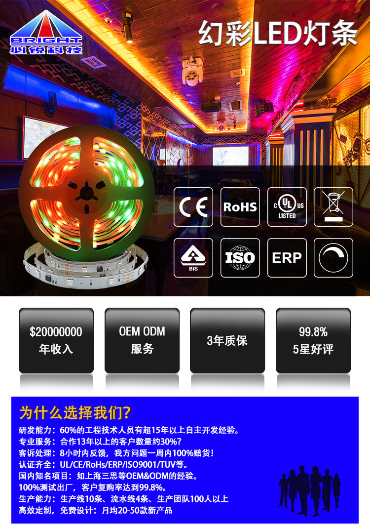 低压12V柔性软灯条60灯/米5050灯珠RGB幻彩