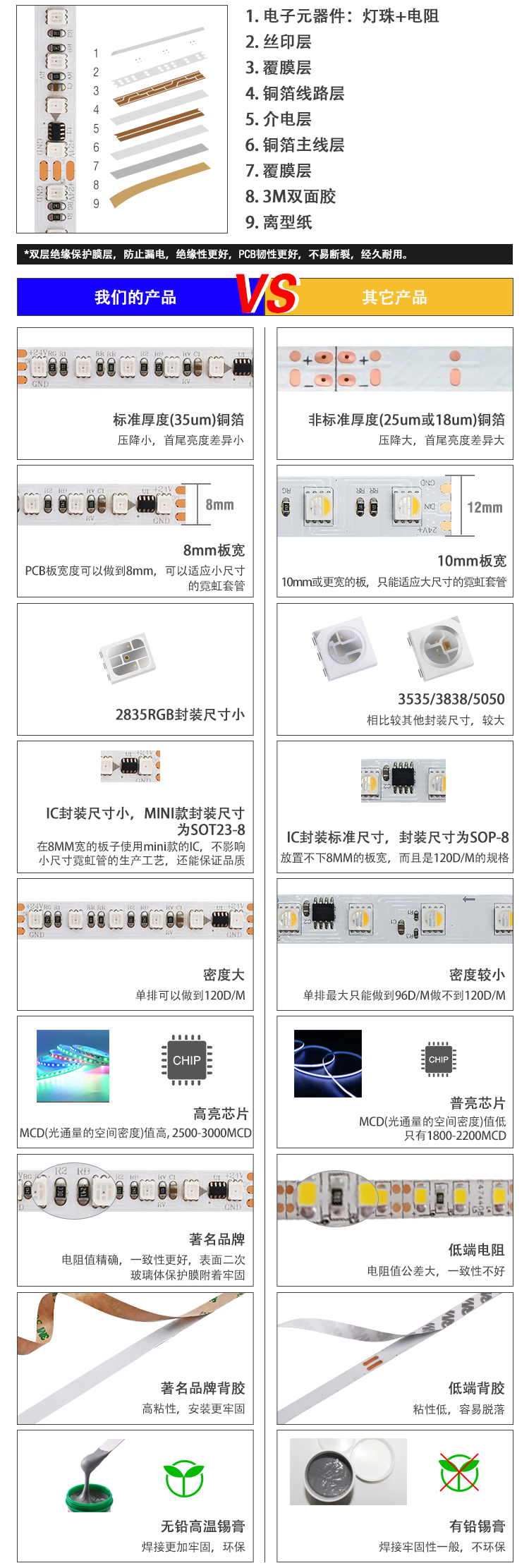 低压24V柔性软灯条120灯/米2835灯珠RGB幻彩