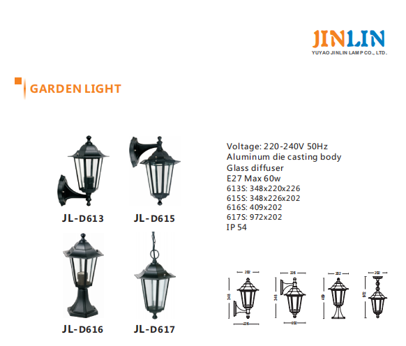 我们是中国户外灯厂家和OEM户外灯厂家,公司主要生产铝合金防潮灯;庭院灯;草坪灯。产品品种500多个,年生产能力100万套。