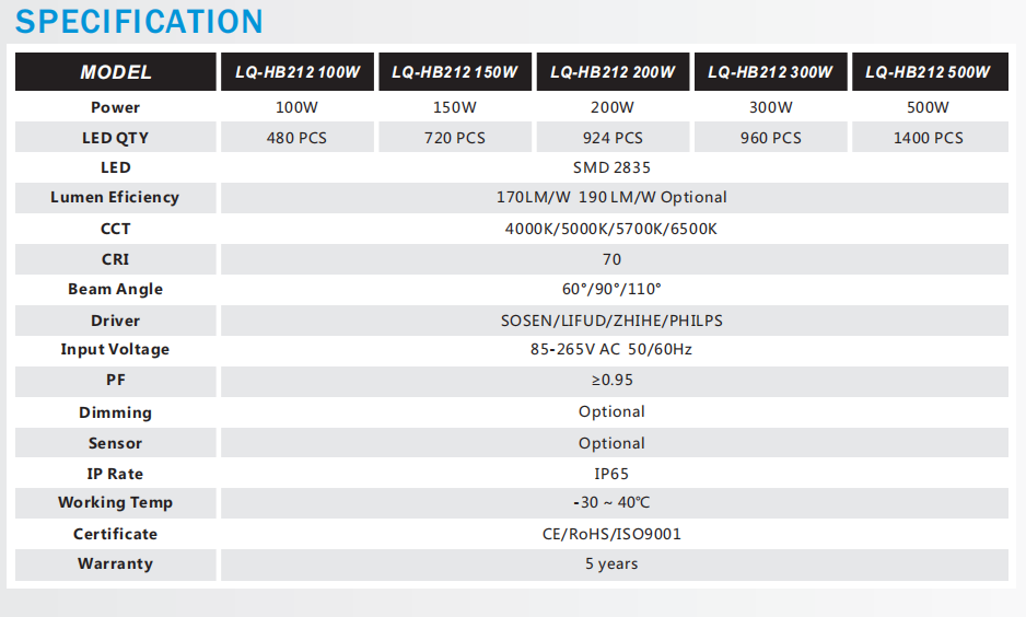 • 色温(k) 3801-4200K、4201-5000K、5001-6400K