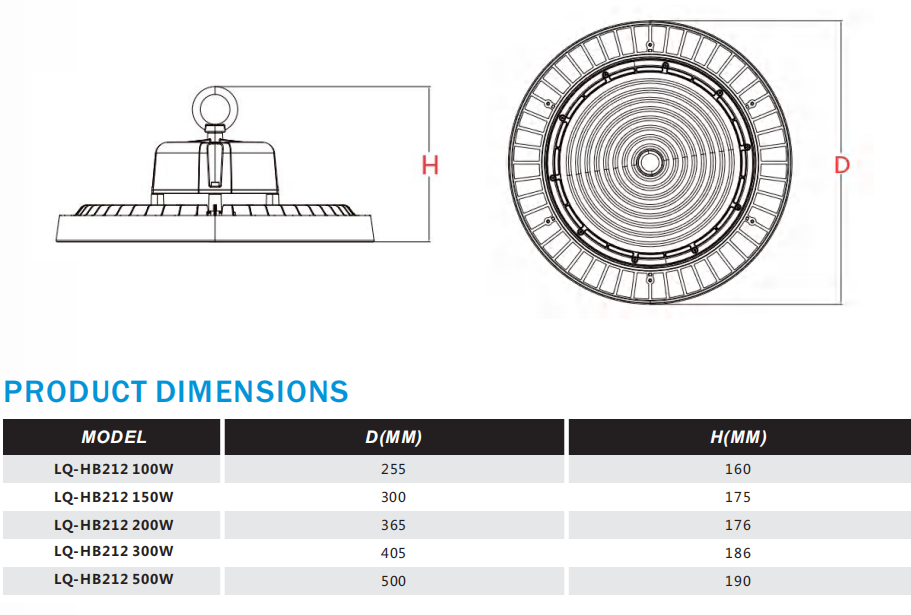 • 灯具直径(mm) Φ151-300mm、Φ301-500mm