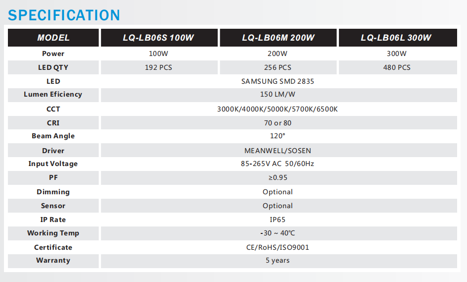 • 色温(k) 2801-3200K、3201-3800K、3801-4200K、4201-5000K、5001-6400K