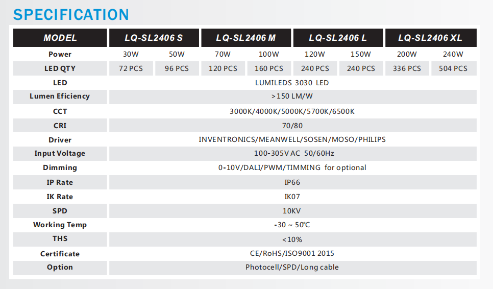 • 色温(k) 2801-3200K、3201-3800K、3801-4200K、5001-6500K、4201-5000K