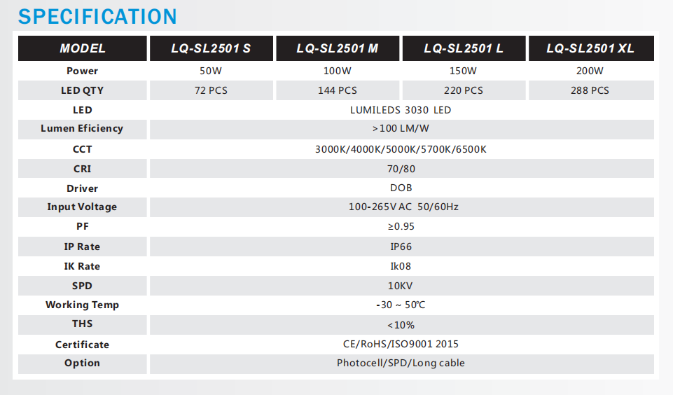 • 色温(k) 2801-3200K、3201-3800K、3801-4200K、5001-6500K、4201-5000K
