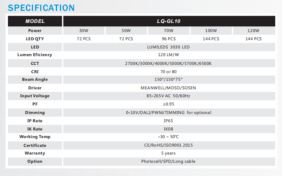 • 色温(k) ≤2800K、2801-3200K、3201-3800K、3801-4200K、4201-5000K