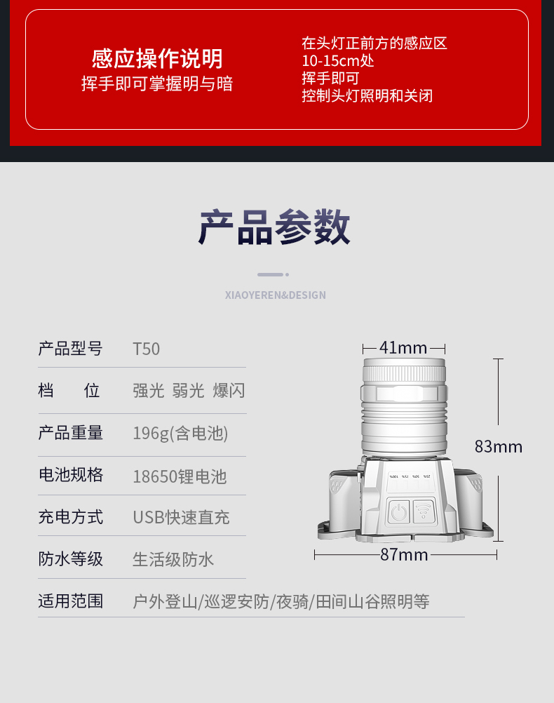 感应头灯T50