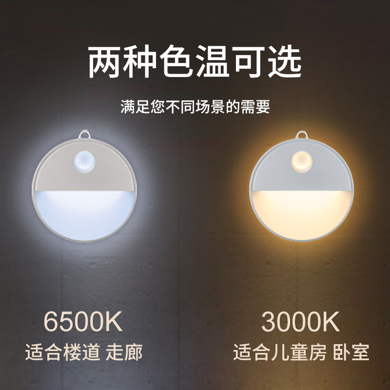 人体感应小夜灯电池磁吸智能光控led楼道床头宿舍小壁灯橱柜灯