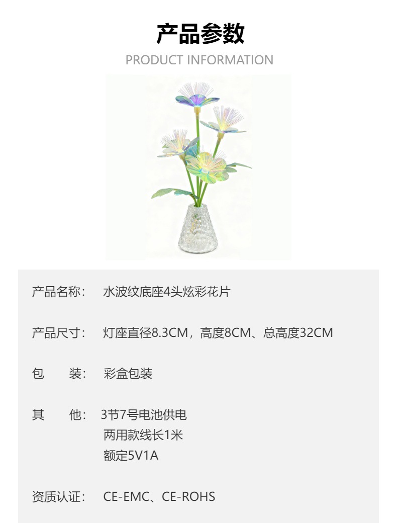 七色渐变仿真花室内酒店卧室氛围感装饰摆件布置小夜灯