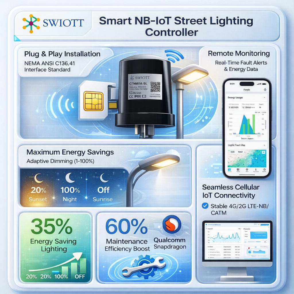 用我们的全集成 LoRaWAN 太阳能智能路灯系统彻底改变城市照明面对快速的城市化进程以及对节能解决方案不断增长的需求,全球各地的城市都在寻求更智能的资源管理方式。我们的集成式 LoRaWAN 太阳能智能路灯系统成为创新的典范,它将太阳能路灯控制器、LoRaWAN 网关和太阳能路灯整合为一个统一的智能解决方案,旨在为可持续的城市未来铺平道路。核心在于智能电力管理我们系统的核心是 SCC 太阳能 LED 控制器,这是一款集众多先进技术于一身的强大设备,旨在最大限度地提高太阳能的利用效率。其 MPPT 40W 充电能力确保了最佳的功率点跟踪,从而显著提高全天的太阳能收集效率。控制器的自适应电压功能使其能够无缝适应 12V 或 24V 系统,而其 IP67 工业级防护等级则保证了其在防尘和防水方面的强大保护能力,使其适用于最恶劣的户外环境。安装过程十分简便,这得益于太阳能电池板、电池和灯具的连接端口都标有清晰的标签,使得安装过程快速且无误。无缝连接实现统一控制LoRaWAN 网关充当中央指挥中心,提供长距离、可靠的连接,无需昂贵且复杂的基础设施。通过双天线设计实现的广域覆盖,确保了强大的且稳定的信号,能够连接到广阔城市区域内的每盏路灯,有效地消除数据孤岛。针对 LoRaWAN 协议进行优化,该网关确保高效运行且功耗低,其工业级可靠性(封装在坚固、防风雨的外壳中)即使在恶劣的户外条件下也能保证不间断的性能。该网关取代了传统的有线连接,大幅降低了部署成本并简化了维护工作。全天候自主能源管理我们的系统通过其全天候自主运行将能源管理提升到了一个新的水平。在白天,它会最大限度地利用太阳能充电,同时持续监测环境条件。当夜幕降临,灯光会自动亮起,其亮度水平会根据预先设定的调光曲线进行精确调节。借助内置的实时时钟(RTC),控制器能够根据纬度和经度计算出当地的日出和日落时间,从而实现高度精确的调光计划。例如,在深夜、交通流量较低的时段,它可以将亮度降低至 50%,以确保能源的高效利用。实时监测与主动安全警报通过我们系统的实时监测功能,您可以随时了解情况并掌控全局。每个控制器都配备有内置的电计量芯片,能够提供关于电压、电流、有功功率和总功率消耗的高精度实时数据。这种基于数据的 approach 为能源管理和系统优化提供了有价值的见解。此外,系统会自动将关键问题报告到云端平台,以便立即采取行动,包括与灯具、太阳能电池板或电池故障相关的故障报告,以及灯杆倾斜检测,这通过提醒当局在事故发生或恶劣天气条件下采取行动,提高了公共安全水平。具备精准 GPS 定位的自动化资产管理系统告别手动资产追踪和位置标注。我们系统中的每个控制器都内置了 GPS/GNSS 芯片,在安装过程中会自动将精确的纬度和经度信息发送至云端系统,从而即时在管理地图上生成其位置。这确保了从第一天起资产库存的 100%准确性,并简化了维护调度和特定设备的位置确定,从而优化运营并降低成本。适用于任何城市环境的灵活部署模式我们明白每个城市环境都是独一无二的,这就是为什么我们的系统提供了灵活的部署模式。主电源补偿方案允许控制器实时监测电池容量,并在容量过低时自动切换到市电供电,确保即使在恶劣天气持续的长时间内也能实现不间断照明。离网太阳能控制器模式则非常适合新安装、偏远地区或难以接入电网或成本高昂的地区,提供独立运行、白天充电和夜间照明的功能。智能系统五大核心优势能源效率:通过智能 LED 控制系统和优化的太阳能充电方式最大限度地提高能源利用率,减少对传统能源的依赖。成本节约:借助远程监测和诊断功能降低电力费用,并减少维护成本,从而优化资源分配。环境可持续性:通过利用清洁能源为地球做出贡献。Revolutionize Urban Lighting with Our All-in-One LoRaWAN Solar Smart Street Light SystemIn the face of rapid urbanization and the escalating demands for energy-efficient solutions, cities worldwide are seeking smarter ways to manage their resources. Our integrated LoRaWAN Solar Smart Street Light System emerges as a beacon of innovation, combining a solar street light controller, LoRaWAN gateway, and solar street light into a unified, intelligent solution designed to pave the way for a sustainable urban future. Intelligent Power Management at Its Core At the heart of our system lies the SCC Solar LED Controller, a powerhouse of technology engineered to maximize the efficiency of solar energy utilization. With its MPPT 40W charging capability, it ensures optimal power point tracking, significantly enhancing solar energy harvesting throughout the day. The controllers adaptive voltage feature allows it to seamlessly adapt to 12V or 24V systems, while its IP67 industrial-grade rating guarantees robust protection against dust and water, making it suitable for even the harshest outdoor environments. Installation is a breeze, thanks to clearly labeled connection ports for the solar panel, battery, and lamp, enabling fast and error-free setup. Seamless Connectivity for Unified Control The LoRaWAN Gateway serves as the central command center, providing long-range, reliable connectivity that eliminates the need for costly and complex infrastructure. Its wide-area coverage, achieved through a dual-antenna design, ensures a powerful and stable signal that connects every streetlight across vast urban areas, effectively eliminating data islands. Optimized for the LoRaWAN protocol, the gateway ensures efficient operation w