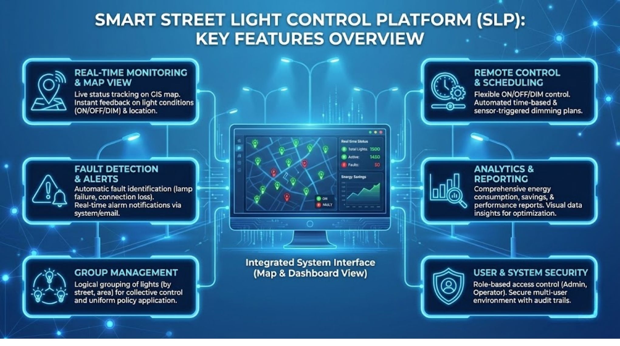 Centralized Control: Monitor and manage all lights in real-time via an intuitive interface with GIS mapping.