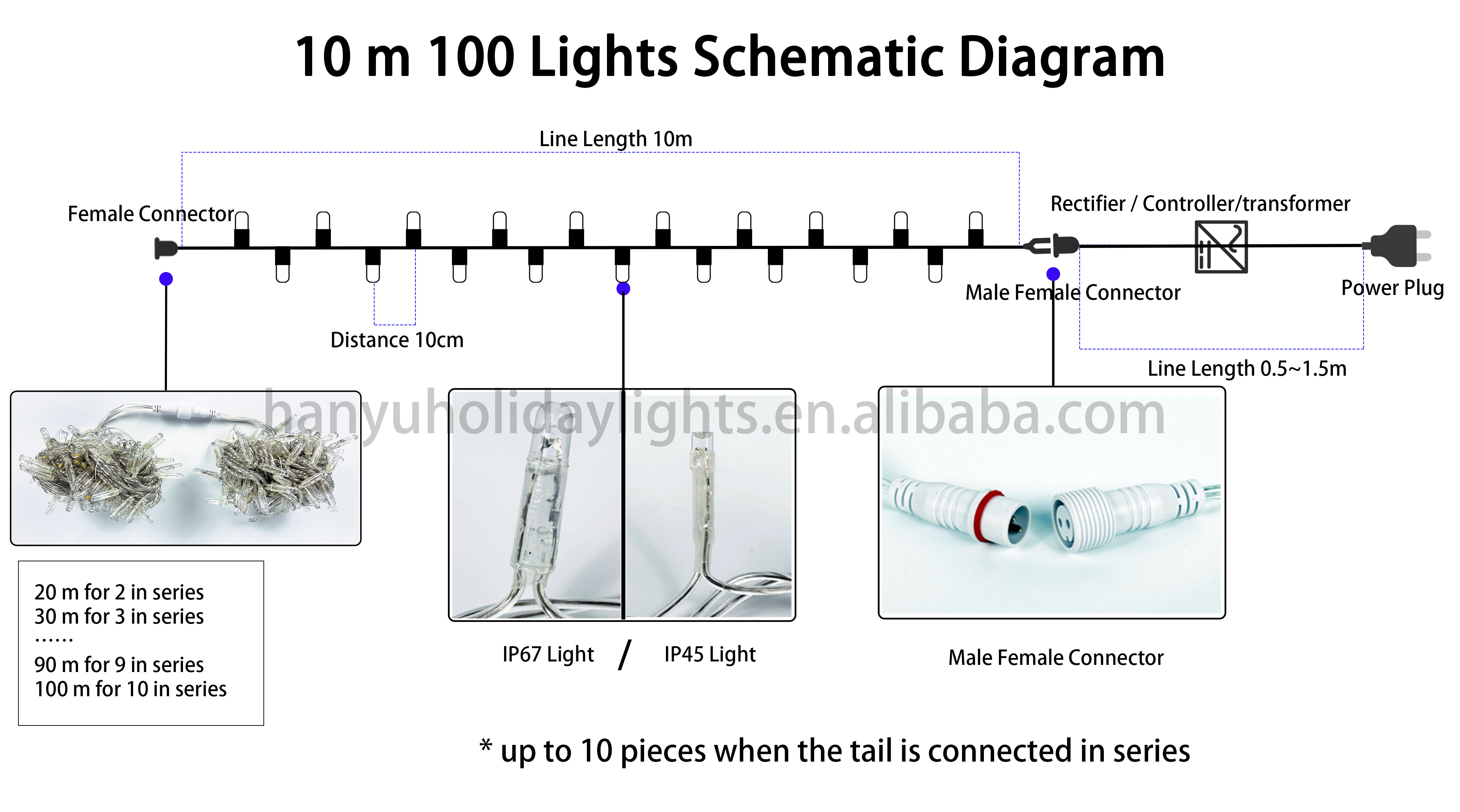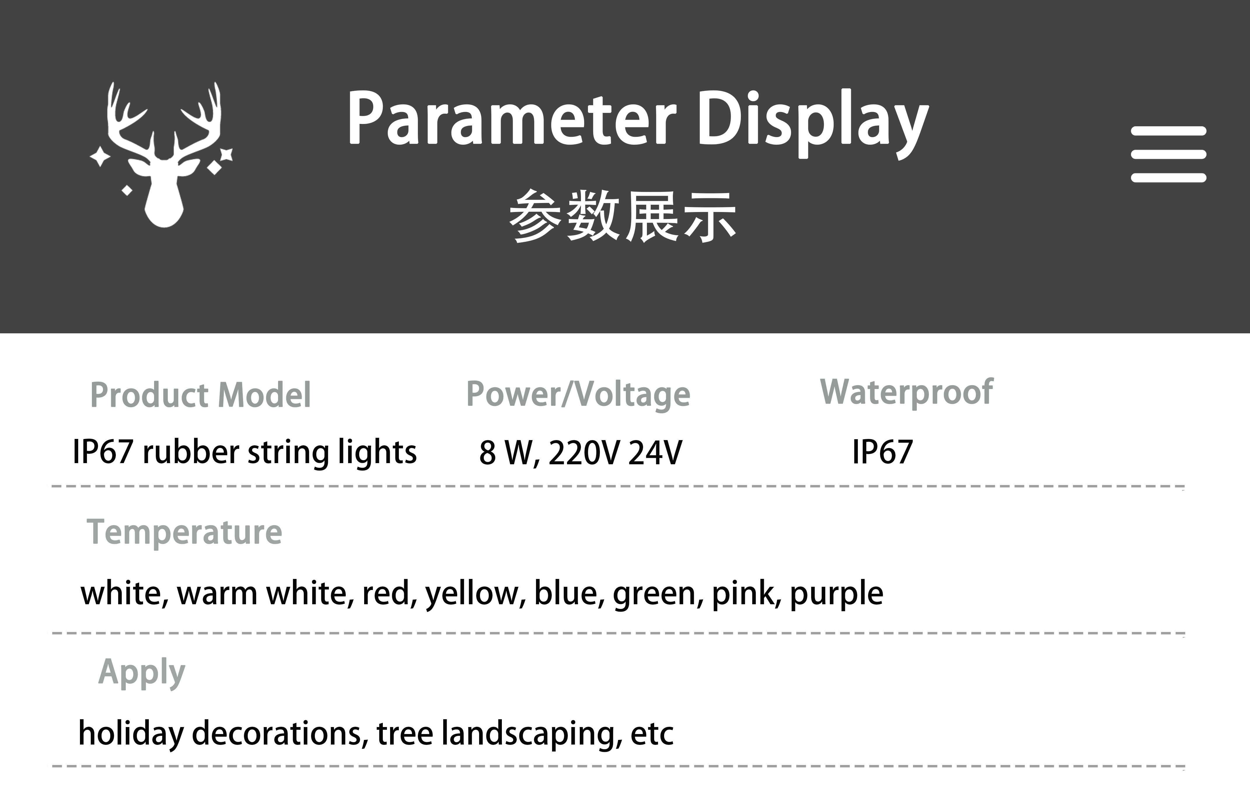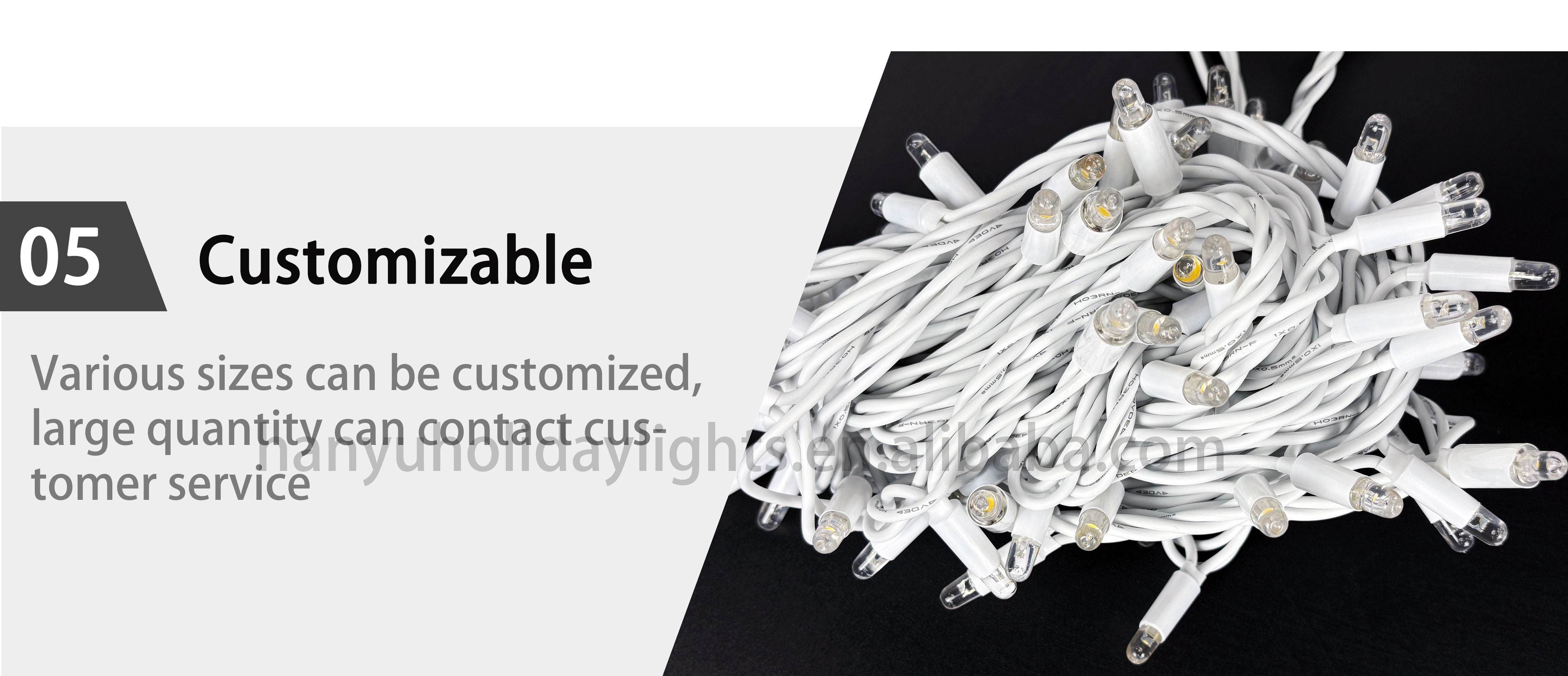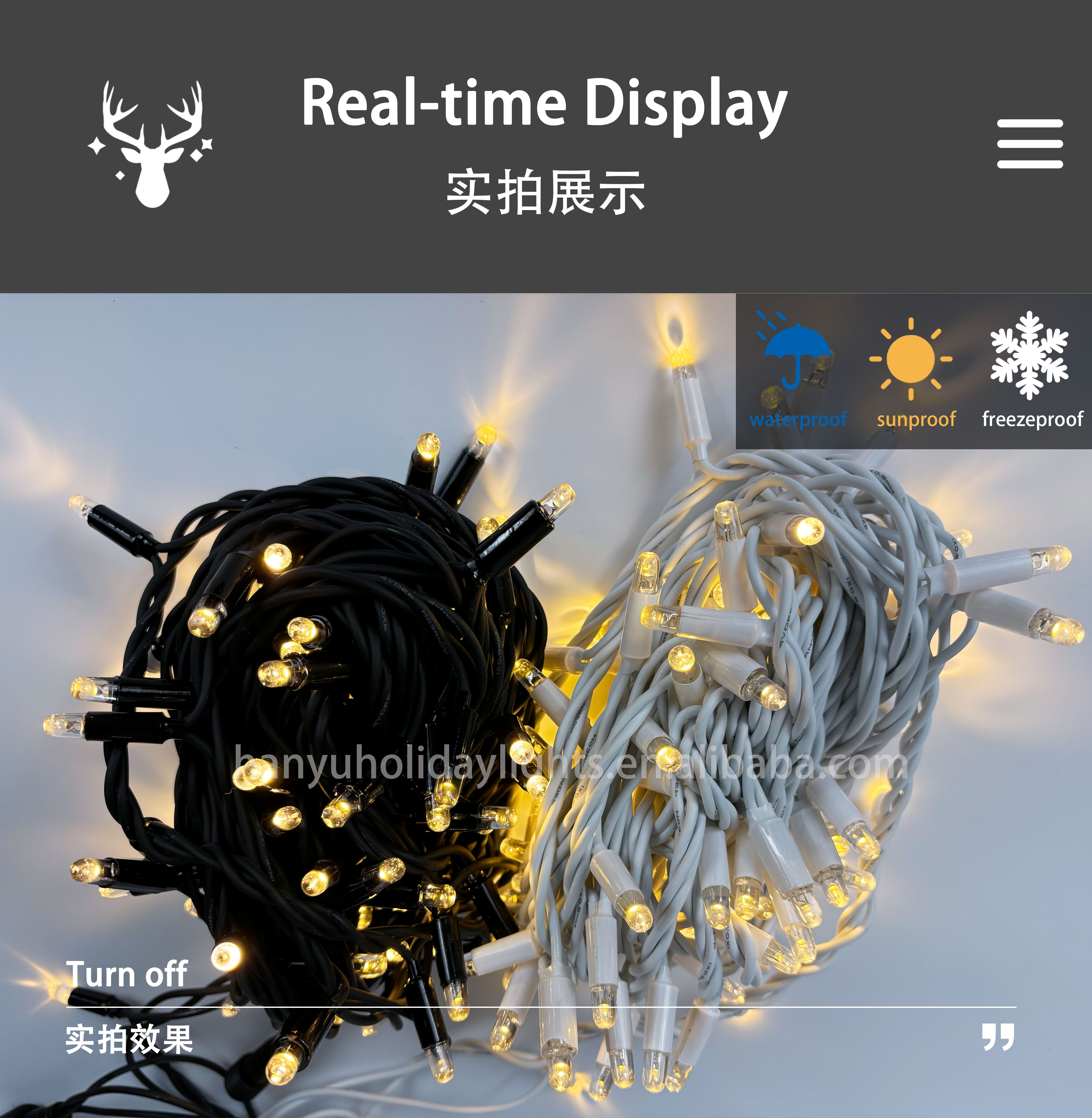 防水IP67户外使用橡胶电缆10米LED串灯闪光圣诞灯链派对