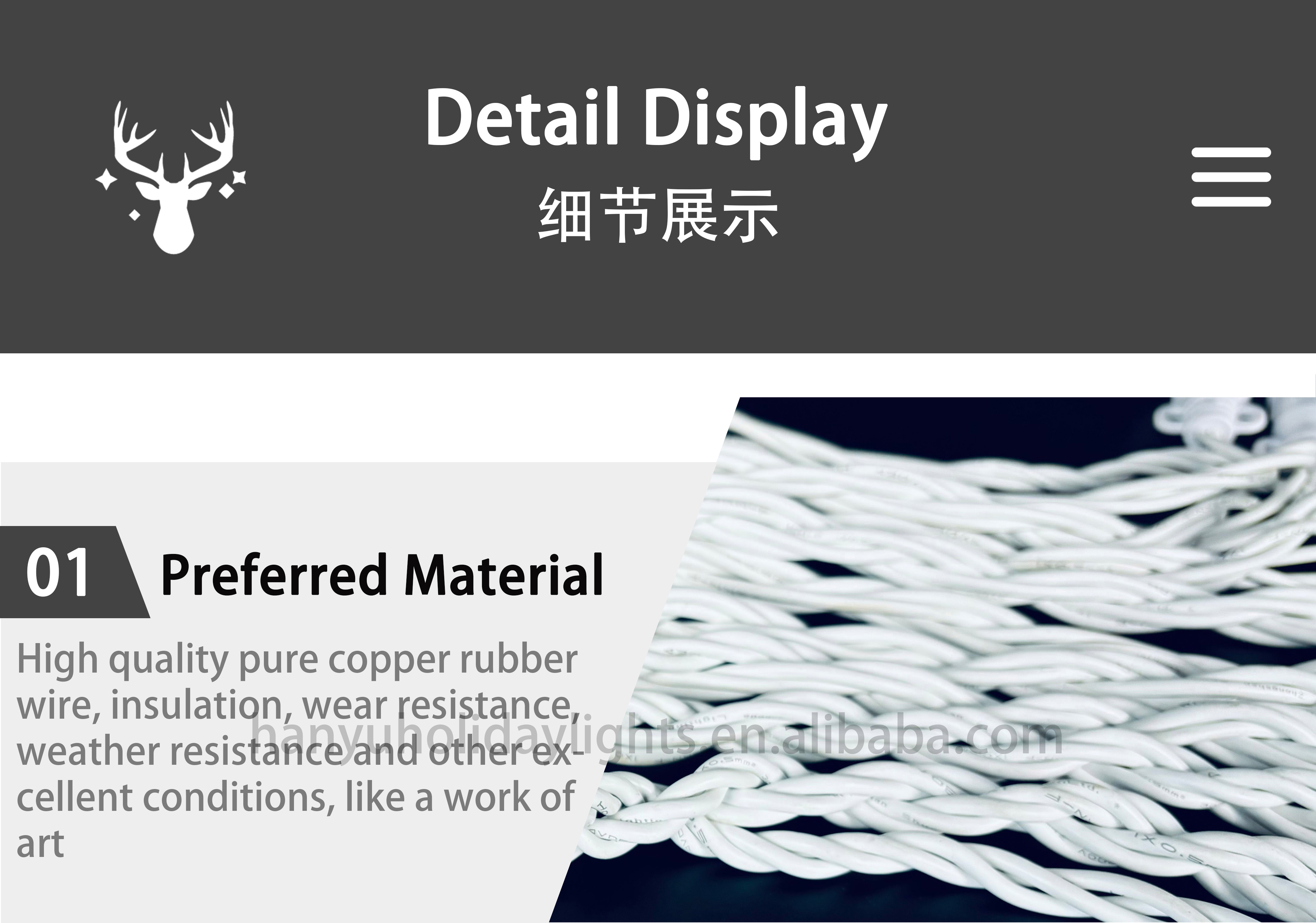中山韩宇灯饰有限公司创建于2009年,2018年获得自营出口权,年生产节日灯1000万串,是国内较大的节日灯出口基地。产品类型有直线灯,冰条灯,网灯,循环灯,螺旋树及LED一系列的灯串。我厂拥有较先进的节日灯配套设备:电线生产设备,全自动塑料成型机,自动穿泡机,绕线机,自动剪扣机等等。材料按国际标准采购,产品按国家标准生产,零部件生产及灯串的组装,层层把关。产品量稳定。公司资源配备充分,注重企业文化建设,企业文化进一步提升了工厂的凝聚力。我厂经营稳定,会一直为客户提供可靠的质量保证及满意的产品和服务。为更好的发展业务,进一步开拓创新彩灯产品,欢迎各界朋友莅临参观、指导和业务洽谈。