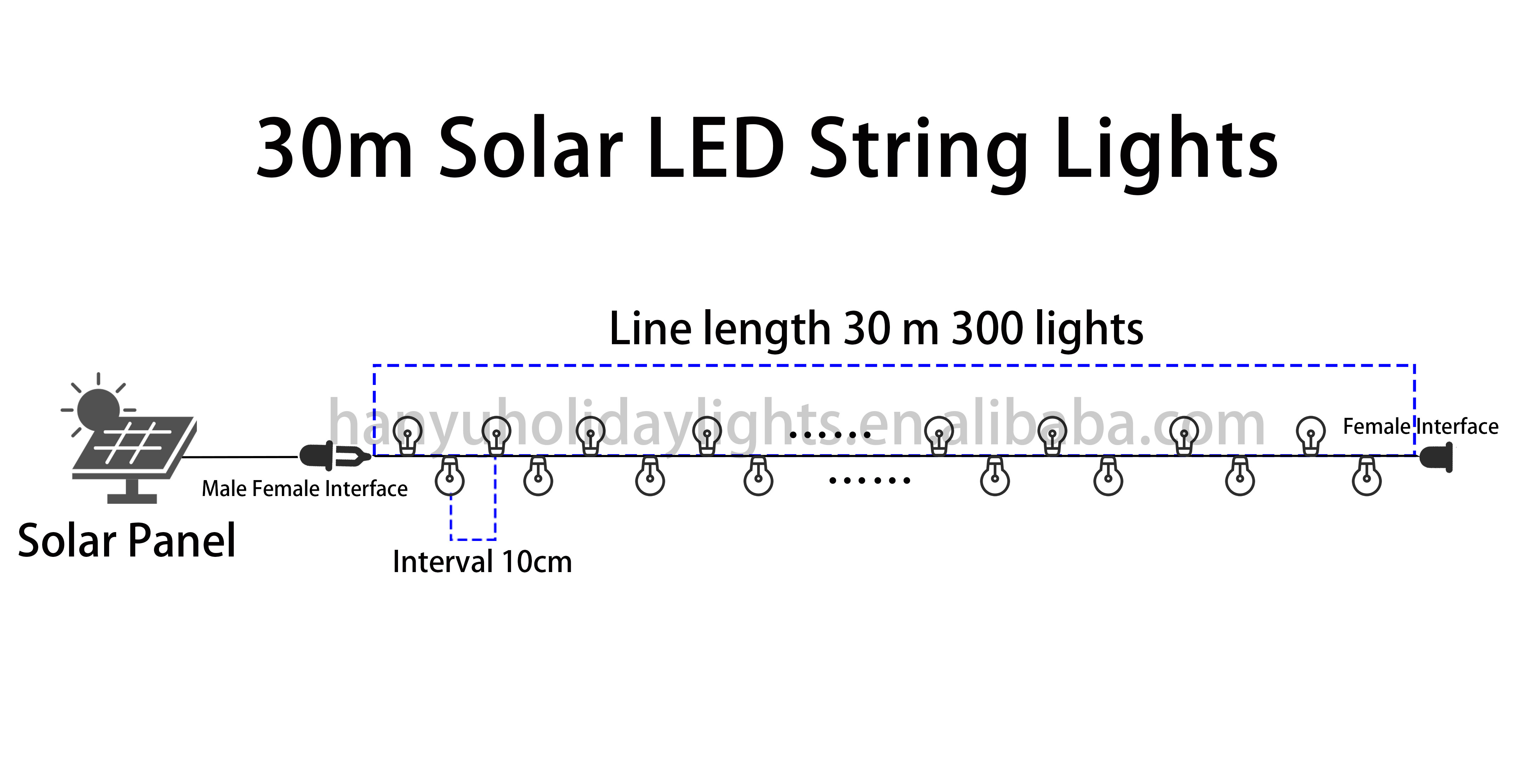 室外太阳能PVC防水灯串30m户外防水花园庭院观景树圣诞装饰