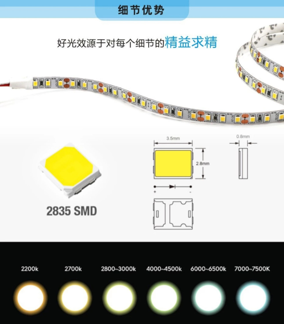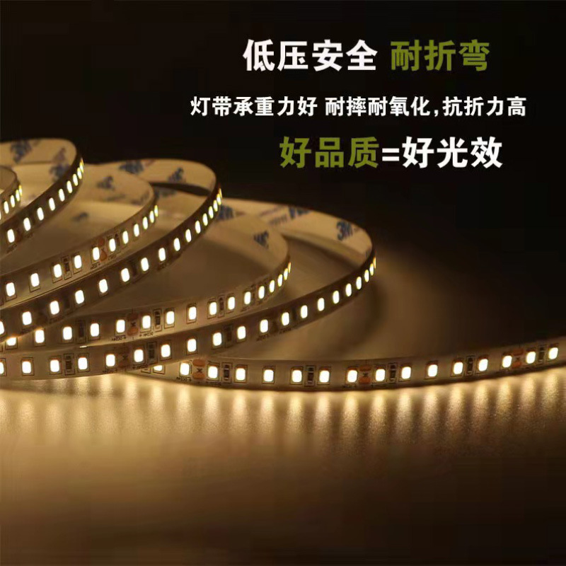 12V24V2835 120灯暖白低压裸板灯带自带背胶自粘酒柜橱柜衣柜灯带