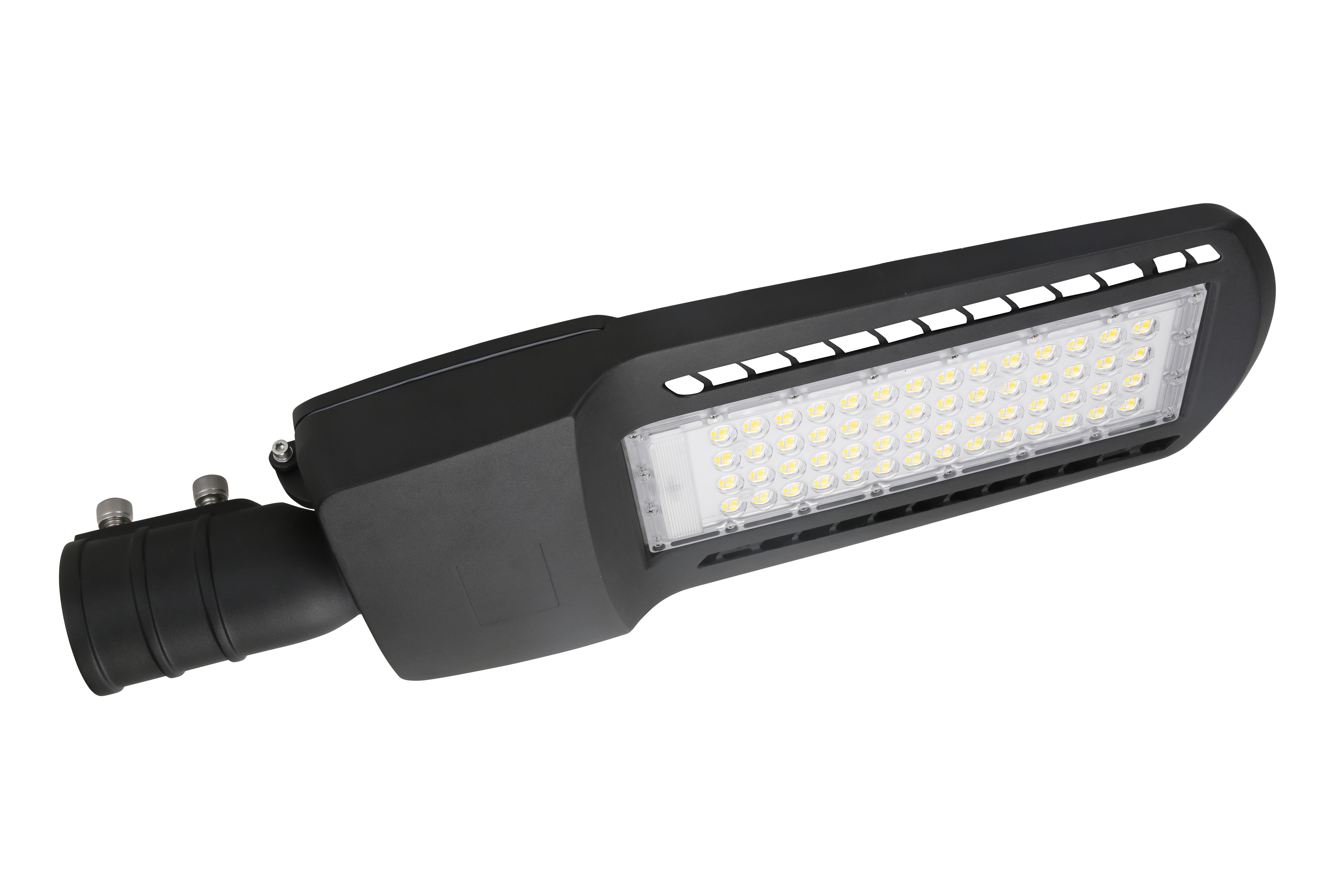 产品特征:30W 至 350W 功率范围的高压压铸铝合金外壳。采用耐磨性强的粉末喷涂工艺进行表面处理。采用 5050 多芯片封装 LED。性能稳定,单个光源损坏不会影响整体正常工作。光学透镜设计。可选II型、III-M型、II型、III-S型、II-M型、II-L型、IV-S型。均匀的光照分布,适用于各类照明项目。卓越的工作温度范围:-40~50°C±15°可调支架,适配不同安装臂。凭借出色的外壳设计,达到IP66/IK09防护等级。搭扣设计,实现免工具维护。自动断电设计。支持PIR、运动传感器、调光及智能控制系统。使用寿命超过50,000小时,提供5年质保。产品规格:配光曲线: