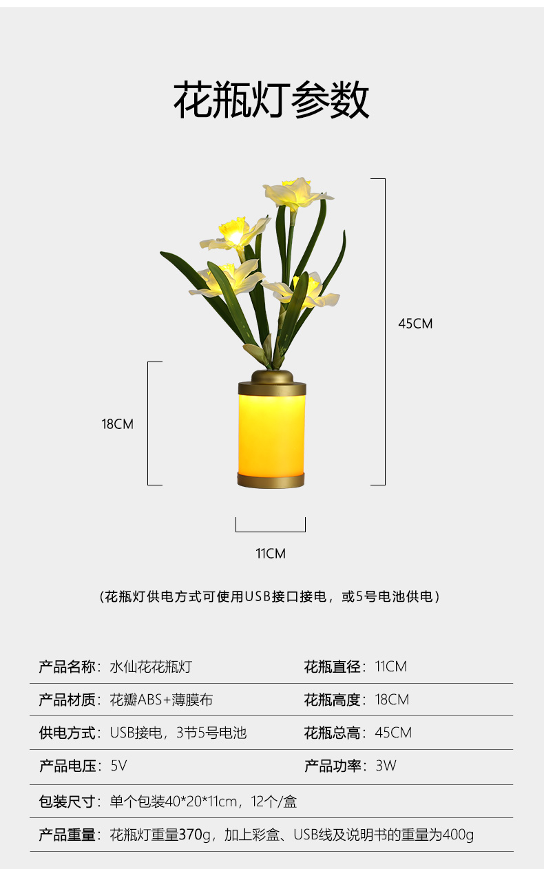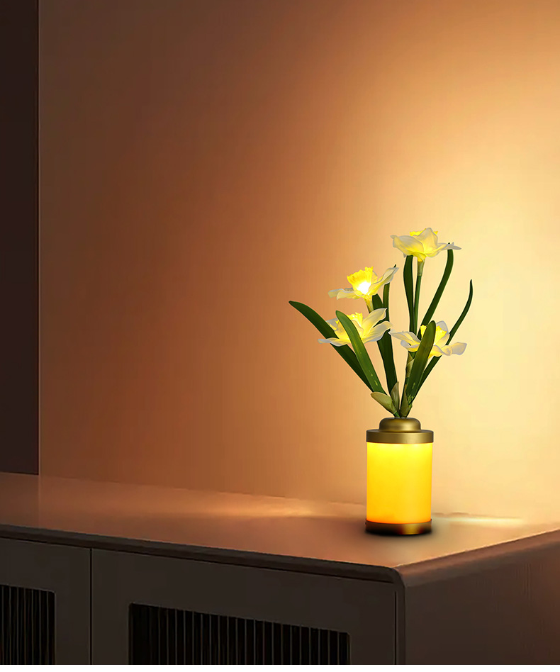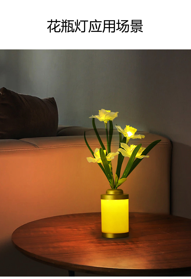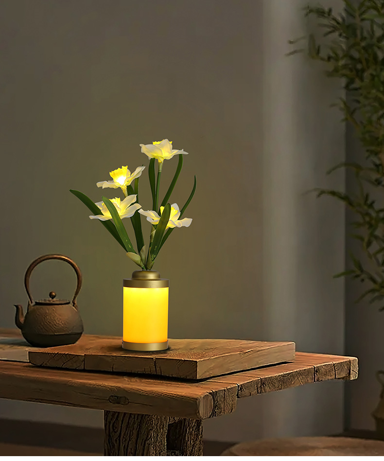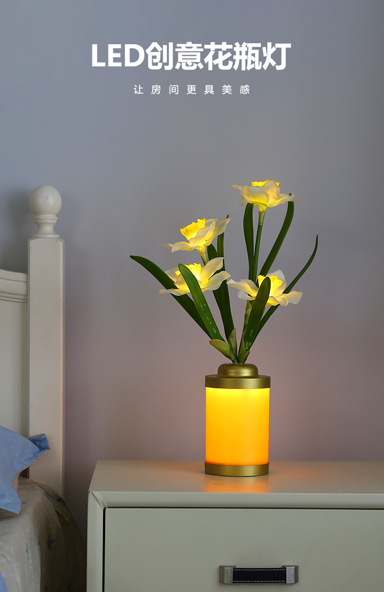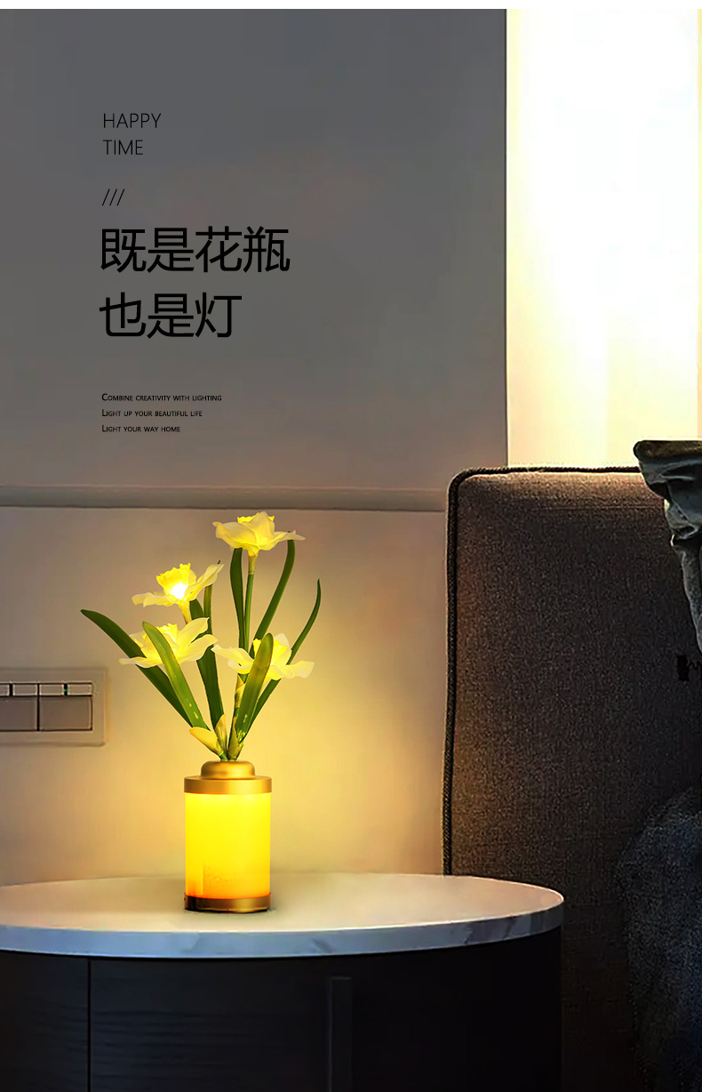 水仙花小夜灯INS风卧室装饰仿真花花瓶灯轻奢网红台灯