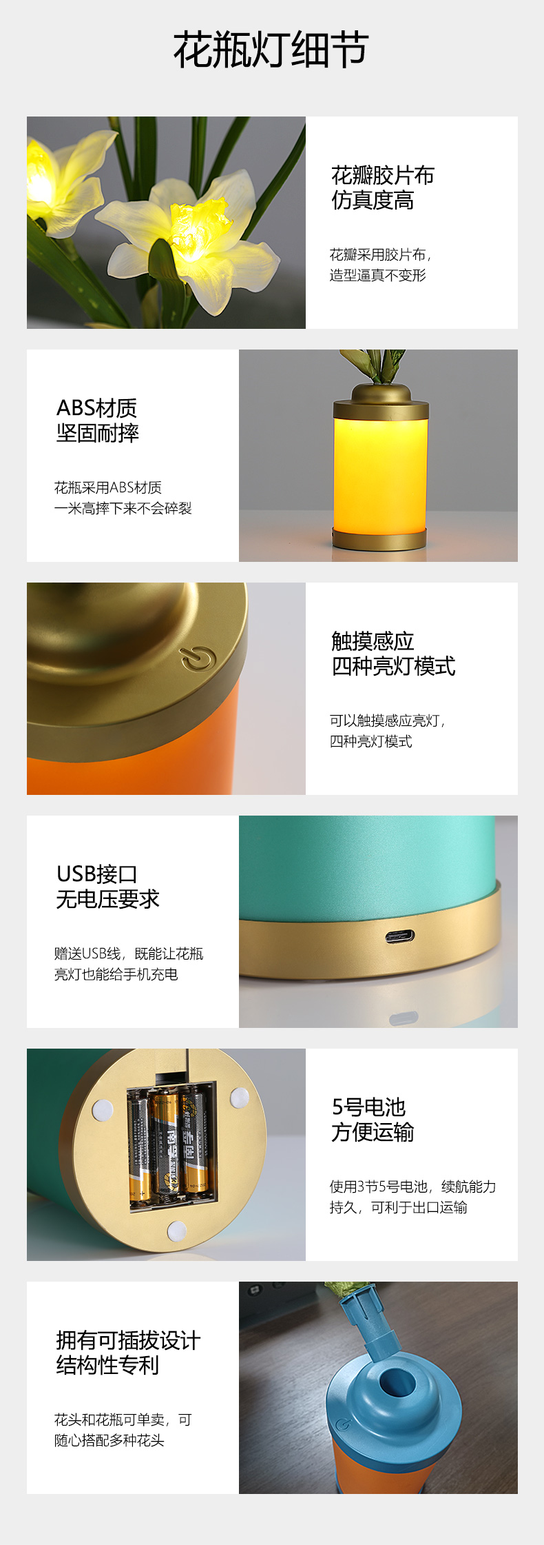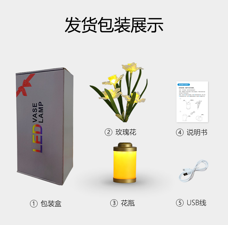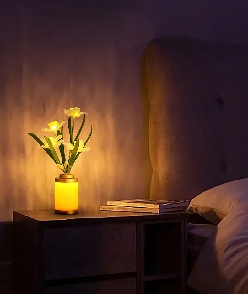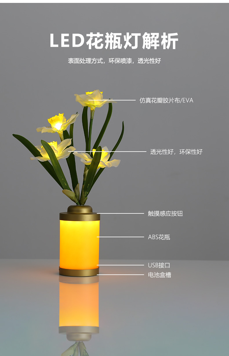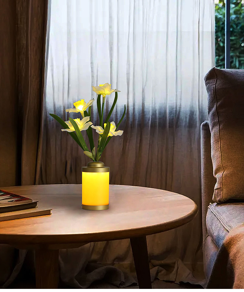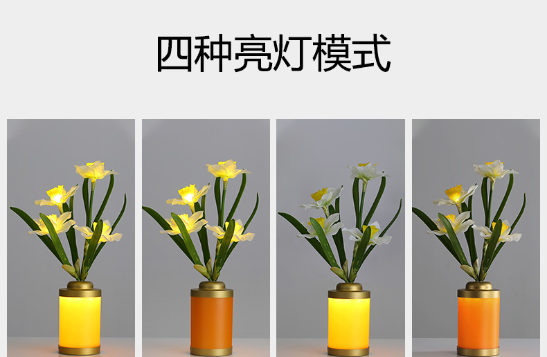 水仙花小夜灯INS风卧室装饰仿真花花瓶灯轻奢网红台灯
