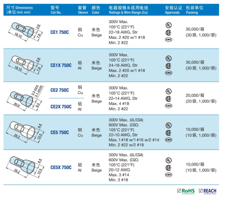 规格2: 铝管 CE1X750C CE2X750C CE5X750C