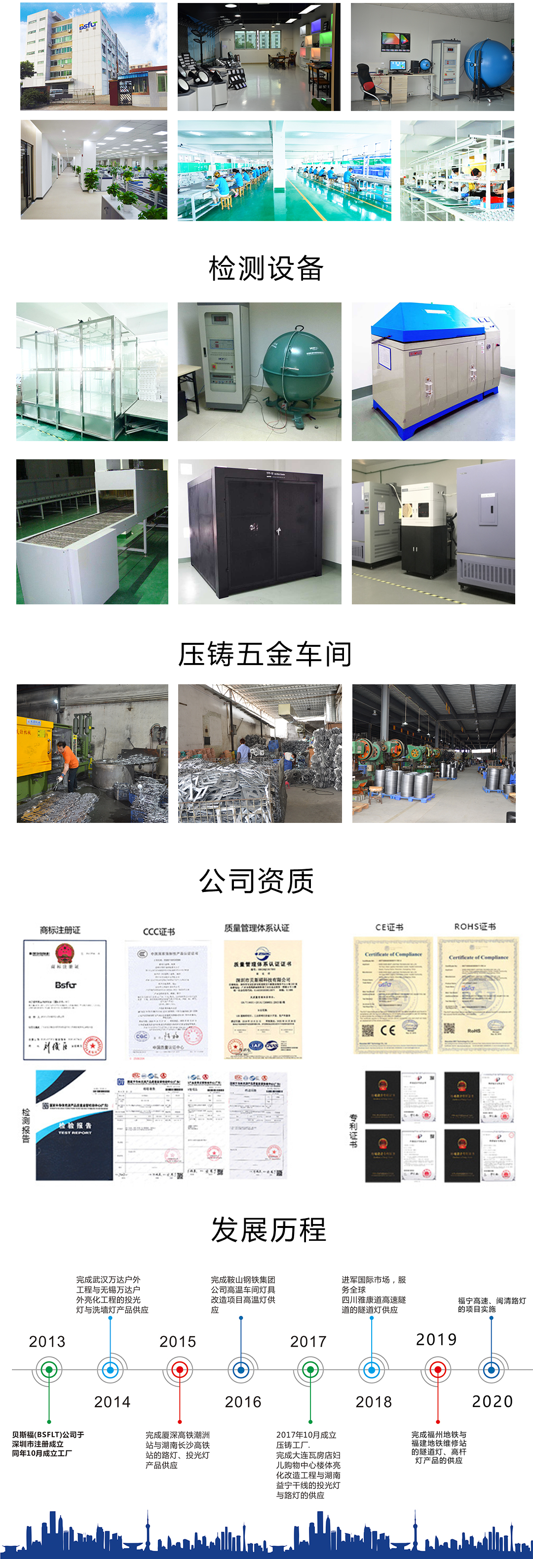 深圳市贝斯福科技有限公司是一家专业的LED道路照明+LED工业照明的产品供应商及系统服务商,集研发、生产、销售、服务于一体的综合照明企业。公司始终致力于照明研发技术,本着“品质”、“创新”、“专注”的理念,为客户提供高性能,高光效,高质量的照明产品。经过多年发展,销售网络已遍布全国,并在多地设有办事处。深圳市贝斯福科技有限公司自成立以来,始终注重科技创新、专业检测设备的建设,拥有众多的专利技术,以及配备有专业的灯具检测设备(安规测试、 EMC测试、光学测试等)。经过多年的产品开发创新与市场的实践,目前已经量产多款路灯、隧道灯、工矿灯、投光灯等系列产品,广泛应用于公路、海底隧道、湖底隧道、城市下沉隧道、轨道交通、车间、厂房、仓库、运动场、市政公共照明等场所。同时贝斯福还提供照明产品方案、仿真模拟设计方案,技术支持及配套解决方案的服务,全面满足不同用户群体的应用需求。公司始终坚持以优异的产品品质为核心,以积极热忱的服务态度和诚信务实的处事原则,以产品为中心,以服务为双翼,贝斯福致力于打造产品与智造平台,为每一位客户提供优质的产品和满意的服务,为长久的合作奠定坚实的基础。未来,我们将持续创新,始终坚持以客户需求为导向,做一流的产品,为客户创造最大价值。