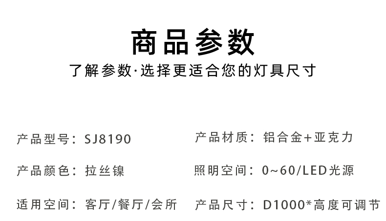 • 灯具尺寸mm) ≤Φ200mm、Φ201-400mm、Φ401-800mm、Φ801-1200mm、Φ1201-2000mm