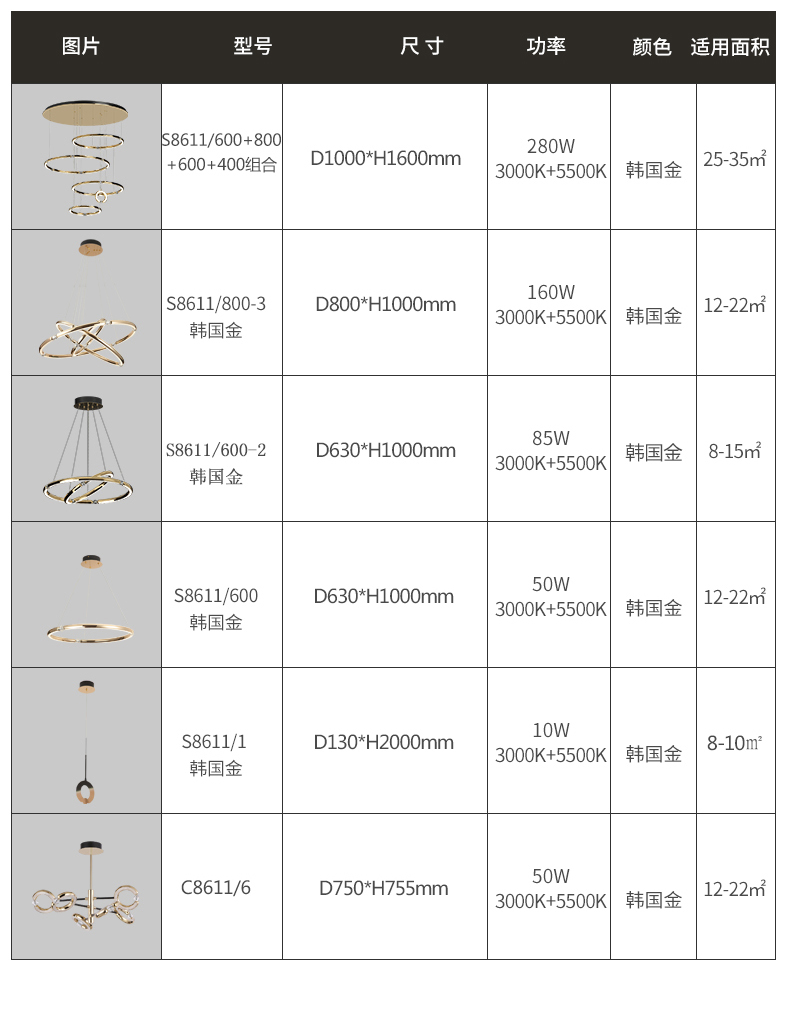 • 灯具尺寸mm) Φ201-400mm、Φ401-800mm、Φ801-1200mm、Φ1201-2000mm、≥Φ2001mm
