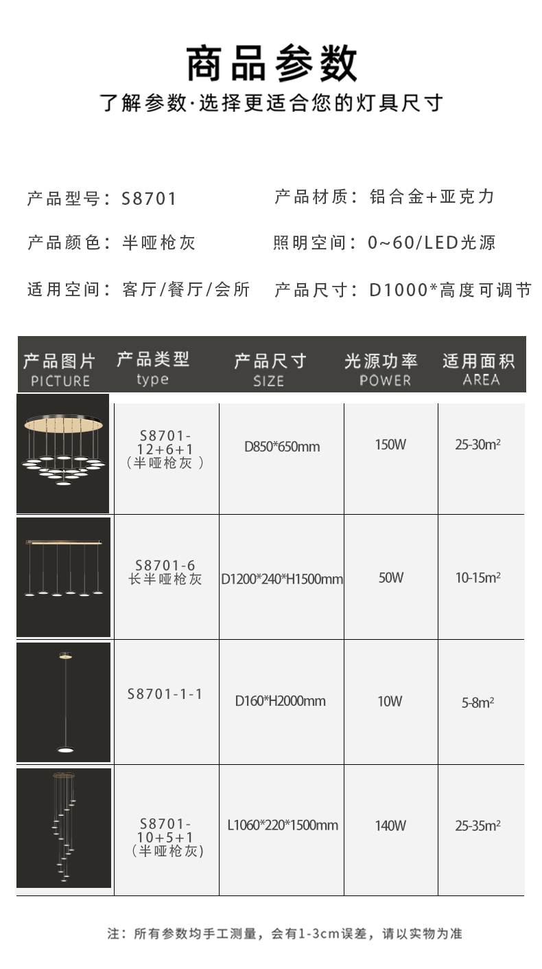 • 灯具尺寸mm) ≤Φ200mm、Φ201-400mm、Φ401-800mm、Φ801-1200mm