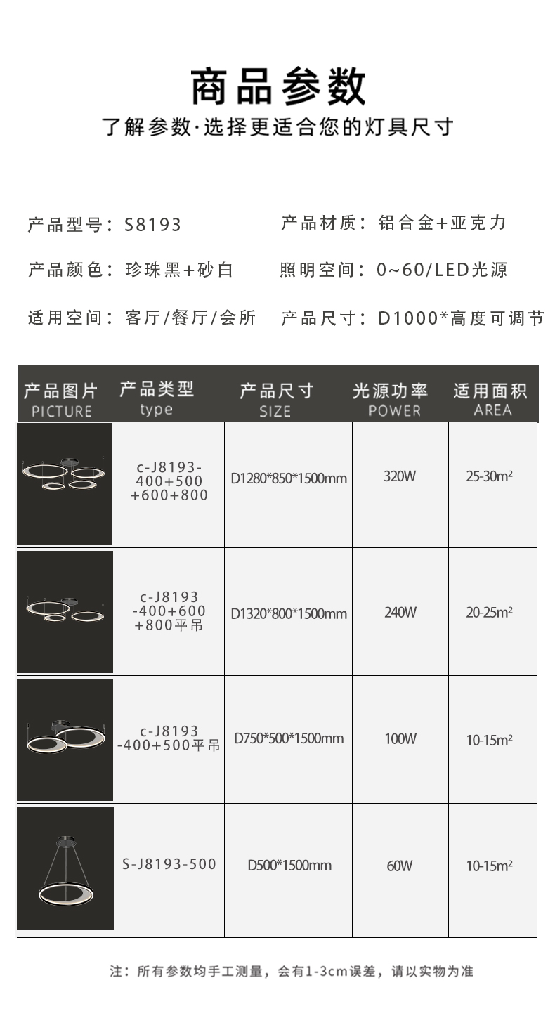 • 灯具尺寸mm) Φ201-400mm、Φ401-800mm、Φ801-1200mm、Φ1201-2000mm