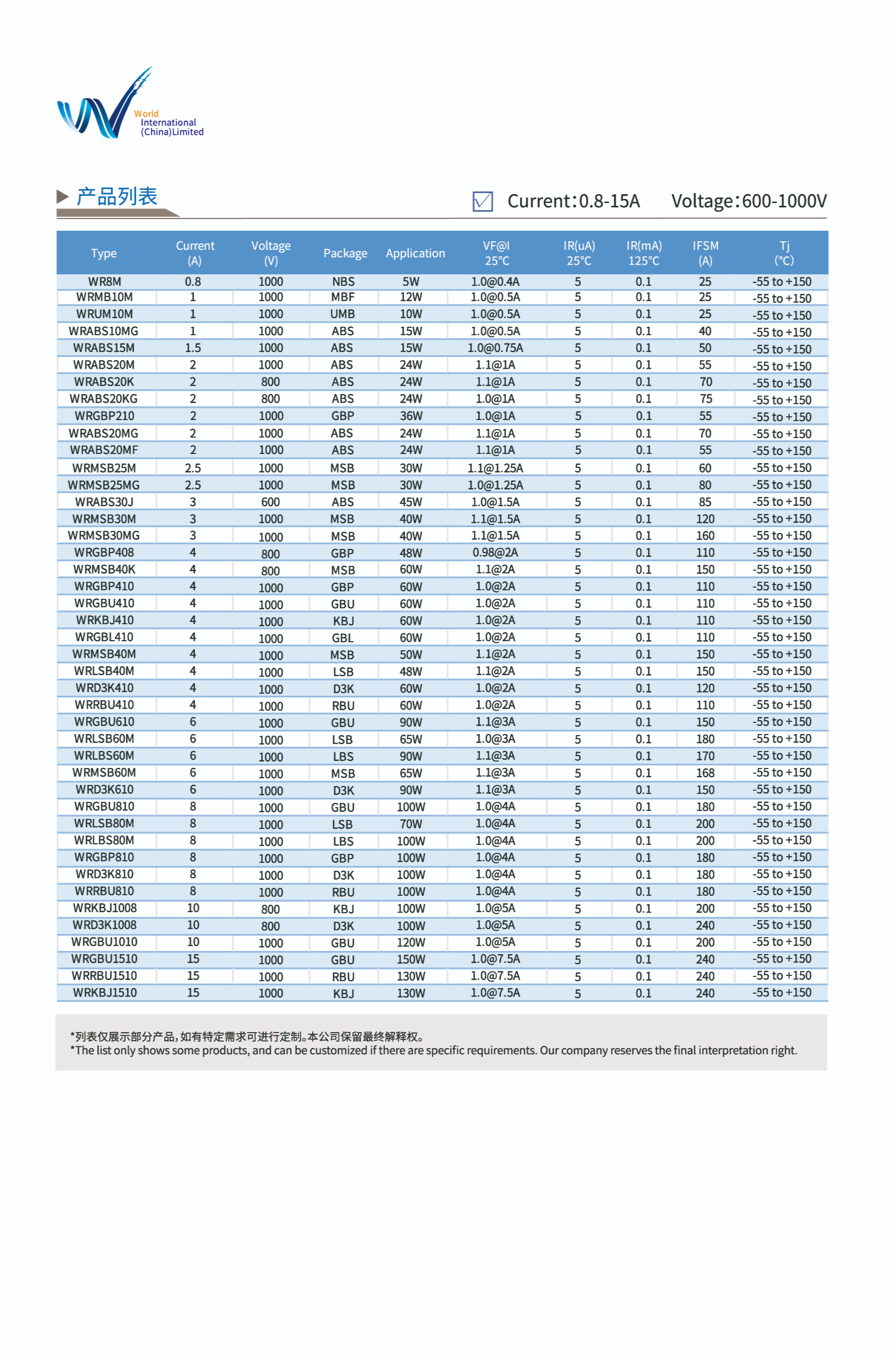 深圳市沃尔德实业有限公司成立于2010年,是一家集研发、生产和销售于一体的国家高新技术企业。公司始终坚持以客户为中心,以市场为导向的发展理念,以此帮助终端客户在方案设计时能够有效优化BOM成本、减少Layout空间、改善EMI特性、提升转换效率。目前沃尔德实业在成都、无锡均设有应用中心及研发中心,在分立器件二极管方面已拥有20多项技术专利。 旗下核心产品系列涵盖:一、保护类:1、模块类:防雷器模块、EMS模块。2、安规类电子元器件:MOV、GDT、Fuse、PTC、NTC。3、半导体类电子元器件:TVS、ESD、TSS。4、创新类:多功能合封产品、具备安全保护的过压保护组件。二、整流类:桥、整流二极管。三、功率器件类:MOS、SCR等。 主要应用于LED照明,消费电子、节能家居、工业设备、新能源、汽车电子等领域。