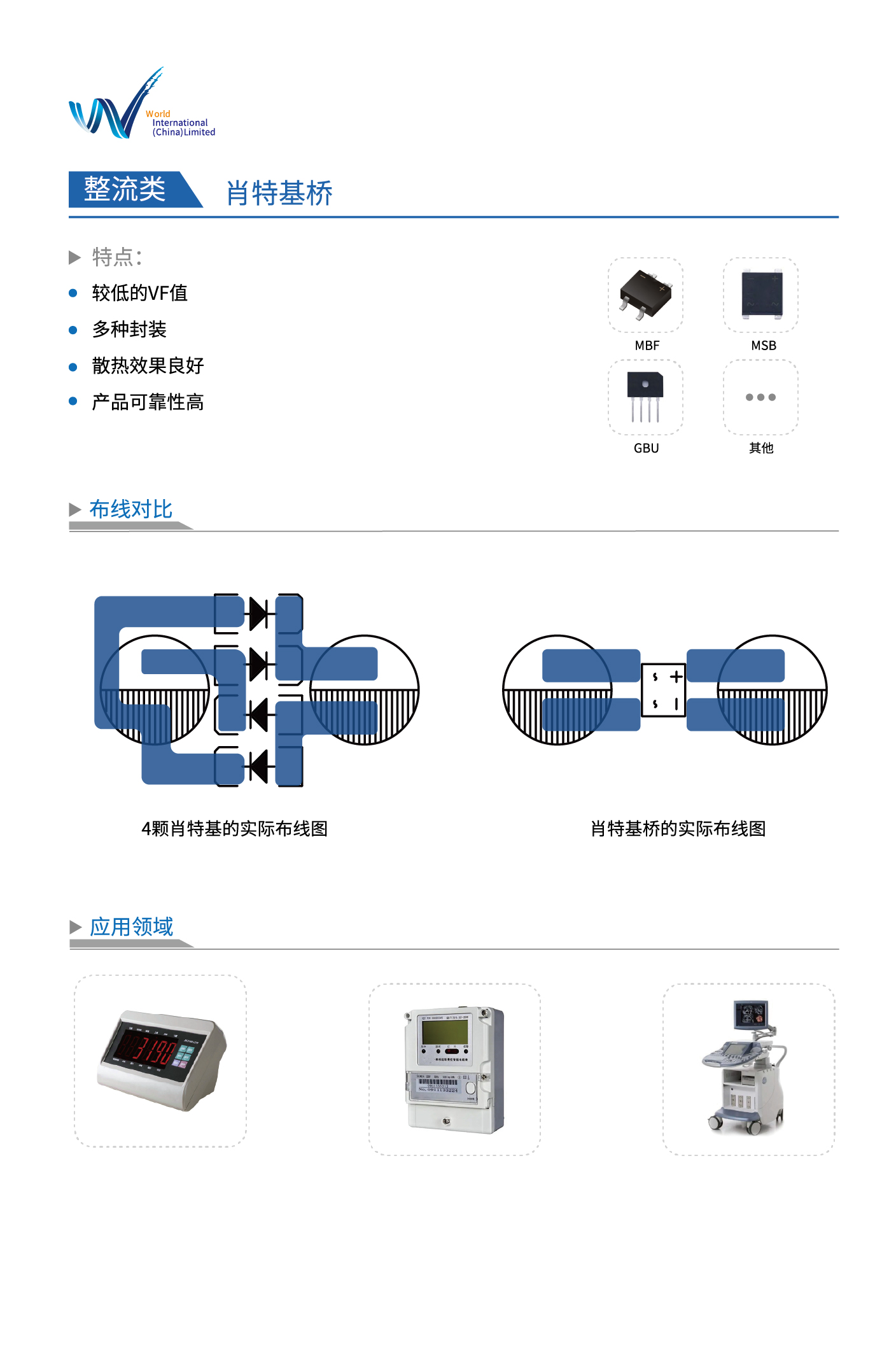 深圳市沃尔德实业有限公司成立于2010年,是一家集研发、生产和销售于一体的国家高新技术企业。公司始终坚持以客户为中心,以市场为导向的发展理念,以此帮助终端客户在方案设计时能够有效优化BOM成本、减少Layout空间、改善EMI特性、提升转换效率。目前沃尔德实业在成都、无锡均设有应用中心及研发中心,在分立器件二极管方面已拥有20多项技术专利。 旗下核心产品系列涵盖:一、保护类:1、模块类:防雷器模块、EMS模块。2、安规类电子元器件:MOV、GDT、Fuse、PTC、NTC。3、半导体类电子元器件:TVS、ESD、TSS。4、创新类:多功能合封产品、具备安全保护的过压保护组件。二、整流类:桥、整流二极管。三、功率器件类:MOS、SCR等。 主要应用于LED照明,消费电子、节能家居、工业设备、新能源、汽车电子等领域。