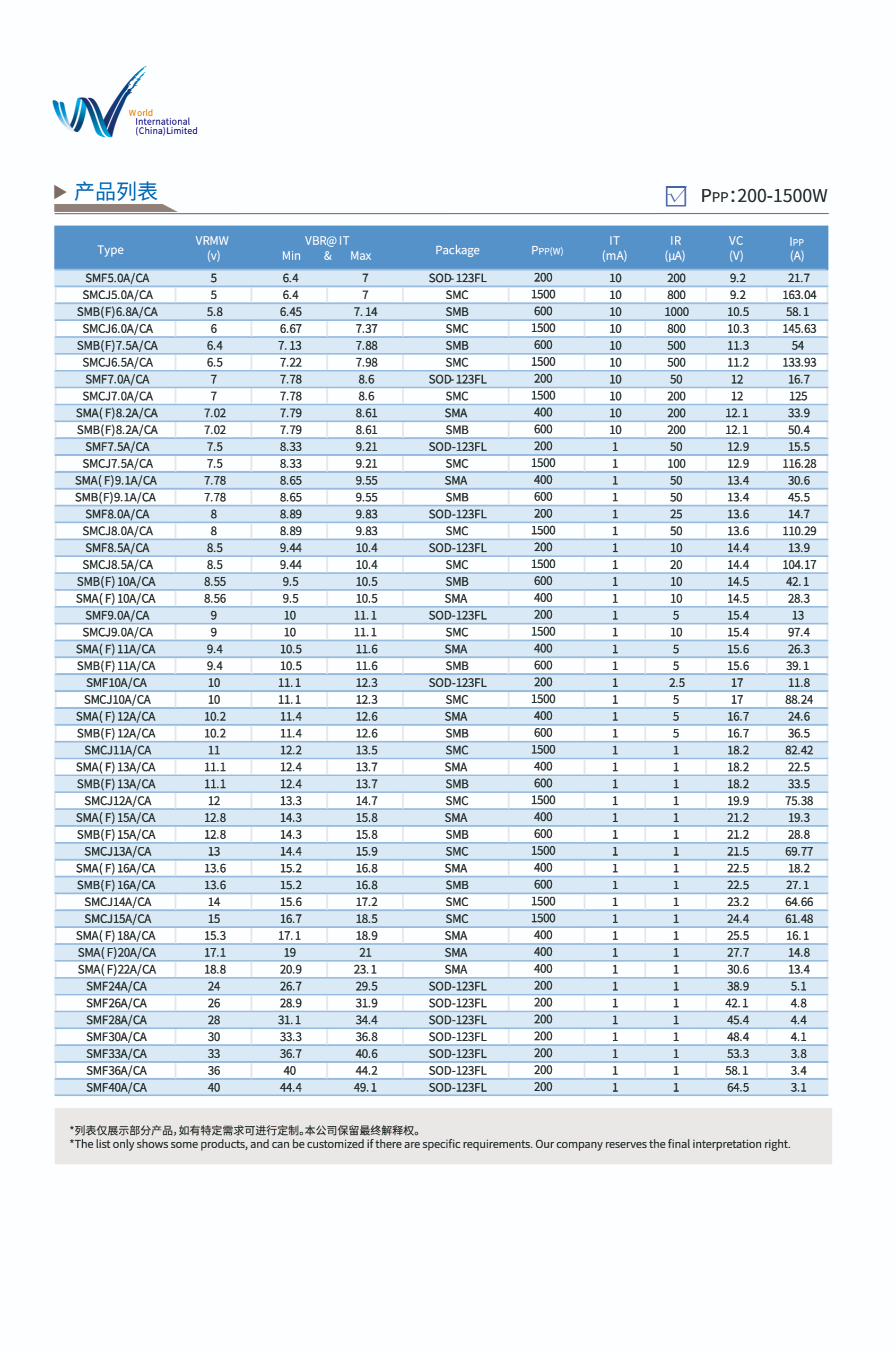 深圳市沃尔德实业有限公司成立于2010年,是一家集研发、生产和销售于一体的国家高新技术企业。公司始终坚持以客户为中心,以市场为导向的发展理念,以此帮助终端客户在方案设计时能够有效优化BOM成本、减少Layout空间、改善EMI特性、提升转换效率。目前沃尔德实业在成都、无锡均设有应用中心及研发中心,在分立器件二极管方面已拥有20多项技术专利。 旗下核心产品系列涵盖:一、保护类:1、模块类:防雷器模块、EMS模块。2、安规类电子元器件:MOV、GDT、Fuse、PTC、NTC。3、半导体类电子元器件:TVS、ESD、TSS。4、创新类:多功能合封产品、具备安全保护的过压保护组件。二、整流类:桥、整流二极管。三、功率器件类:MOS、SCR等。 主要应用于LED照明,消费电子、节能家居、工业设备、新能源、汽车电子等领域。