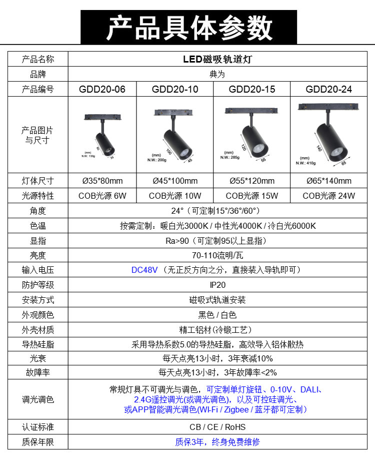 • 色温(k) ≤2800K、2801-3200K、3201-3800K、3801-4200K、4201-5000K、5001-6500K、2800-6500K可调