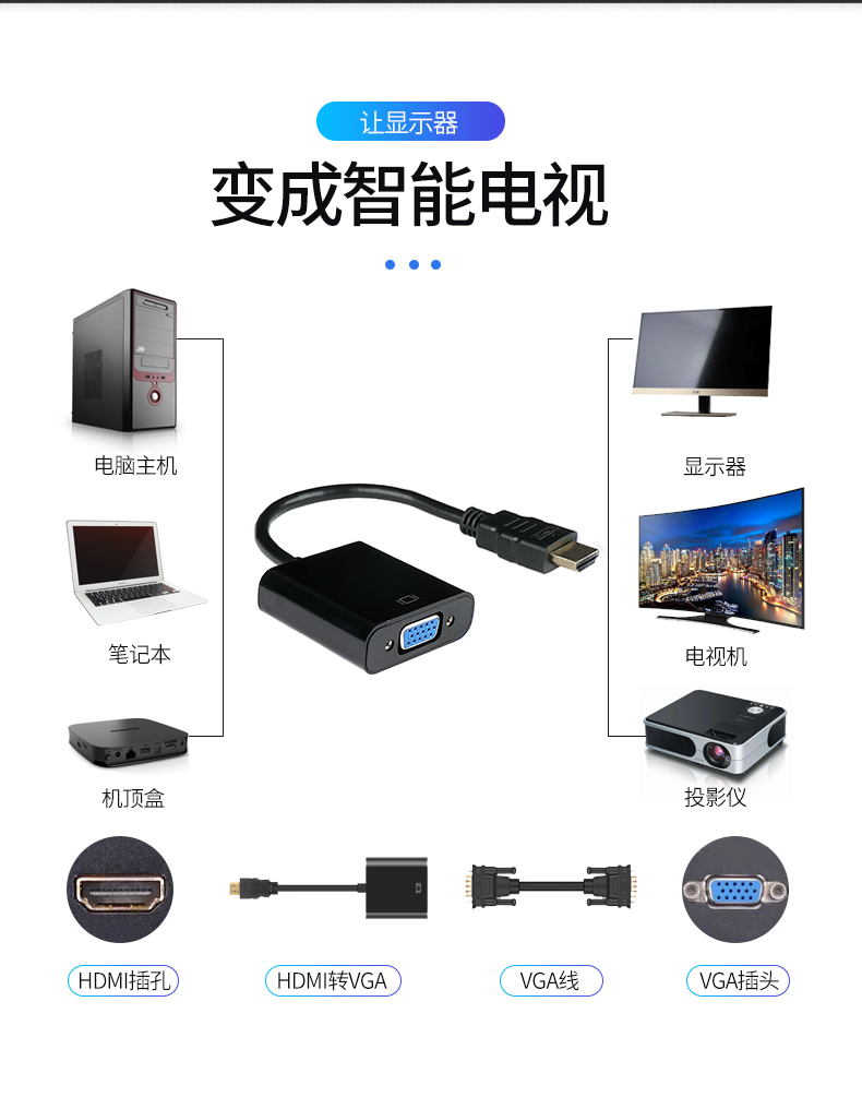 HDMI转VGA转换器带音频高清转vga接口头视频线电脑盒子
