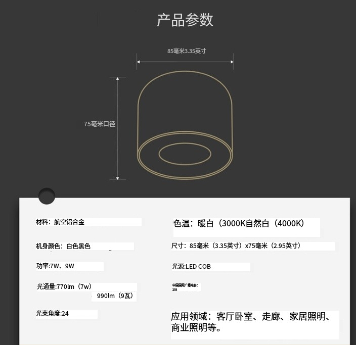 爱斯兰可调式防眩光射灯天花板COB