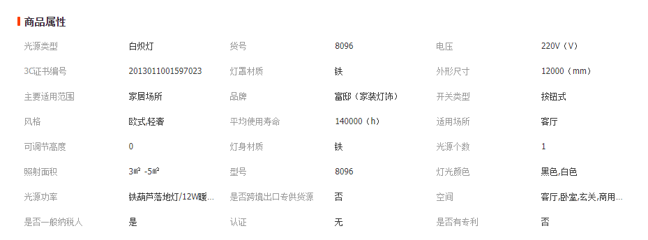 • 灯体材质 铁质