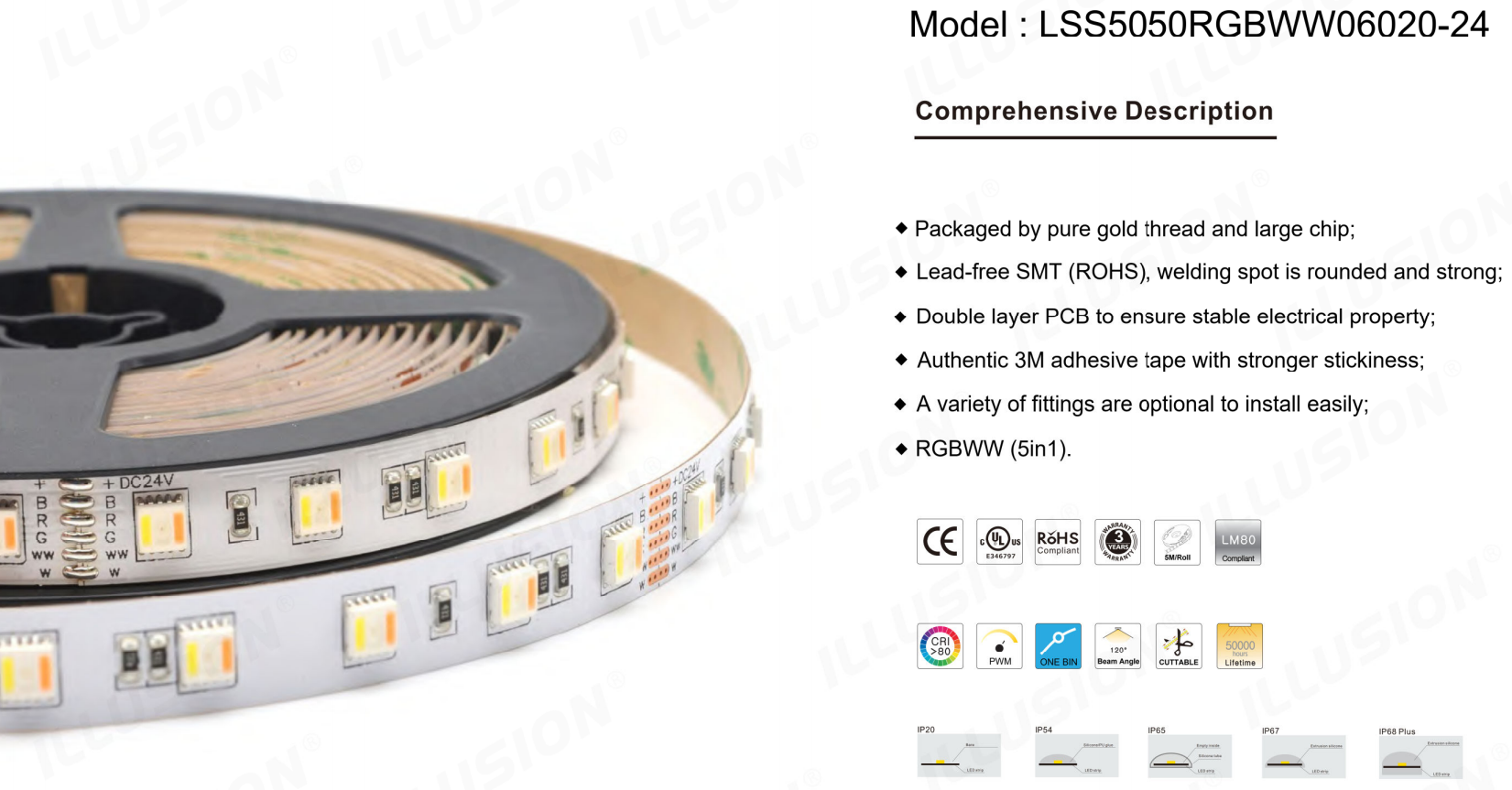 SMD RGBW(四合一)& RGBWW(五合一) 软光条