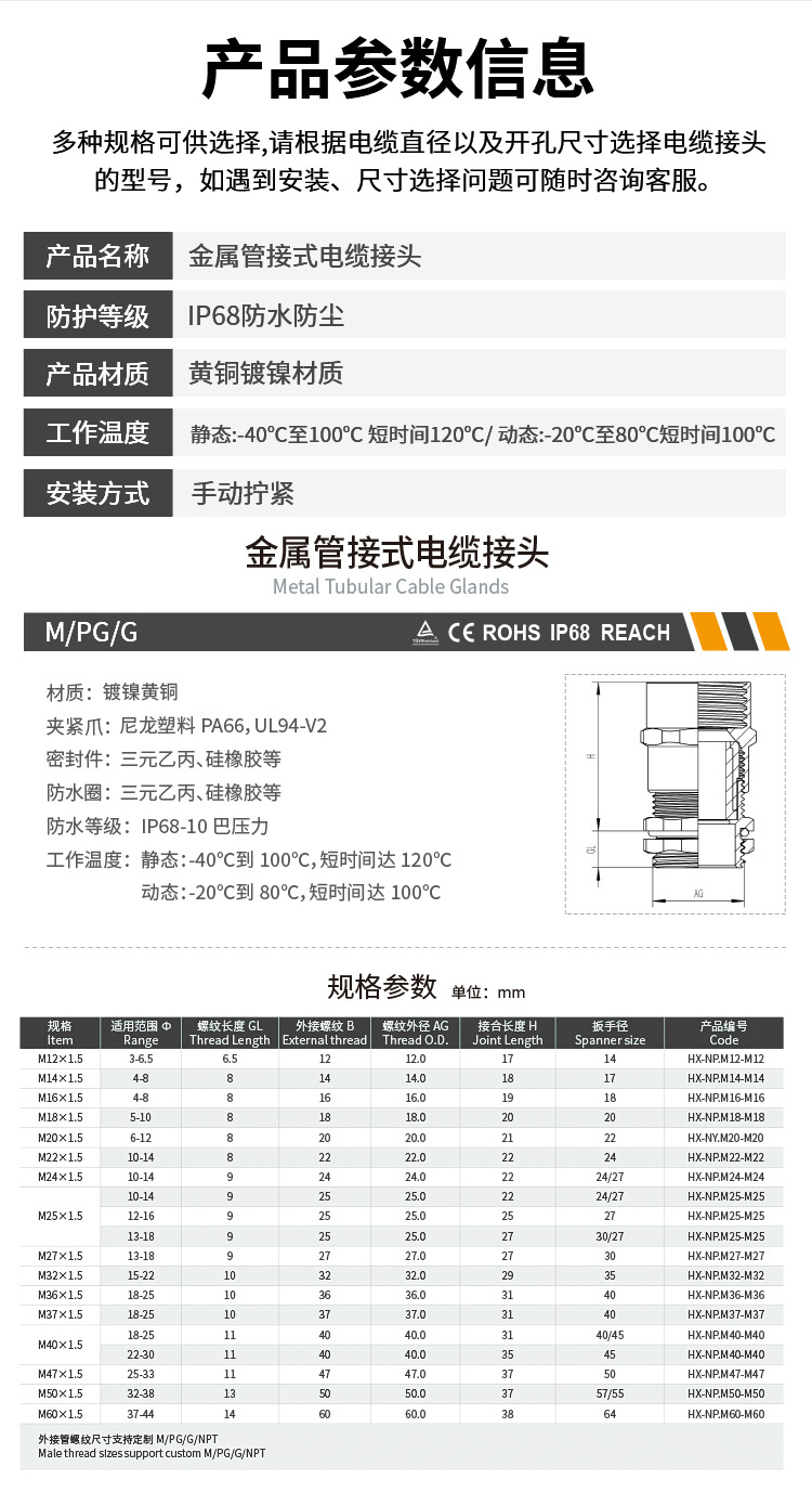 浙江鸿祥连接器有限公司是一家集研发、设计、制造、销售、售后服务于一体的生产加工型企业。主要产品包含:金属电缆接头,填料函、防爆铠装接头、特殊功能电缆接头、软管接头等。公司成立于2006年,历经十余年,以我们专业的技术团队、严谨的生产流程、可靠的产品质量和优质的售后服务,一步步发展成为行业内颇具领导力的企业。公司始终贯彻以质量为中心的原则,并严格按照ISO9000国际质量管理体系的标准和管理模式进行管理和生产,产品已通过CE、IP68、ROHS、REACH等多项认证。