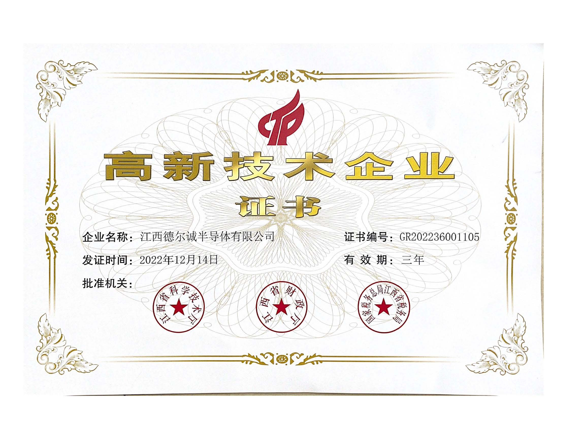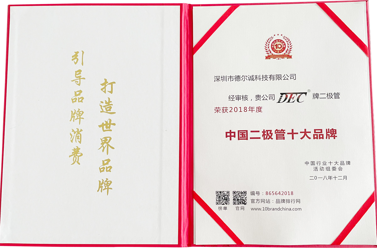 公司拥有强大技术国队,现己成立赣州市半导体(德尔诚)技术创新中心,获得国家级专精特新企业、军民融合企业、科技创新型企业的茉誉称号。品牌标识“DEC”于2018年茉获中国二极管十大品牌,DEC商标在全球180个国家拥有版权优先注册权,南标覆盖36类别,55项发明专利。2022年研发的R4KF高压管项目,入围第十一届中国创新创业大赛(江西赛区)第七届 “洪城之星〞创新创业大赛复赛,并荣获:“国家高新技术企业”,江西省“专精特新“企业。