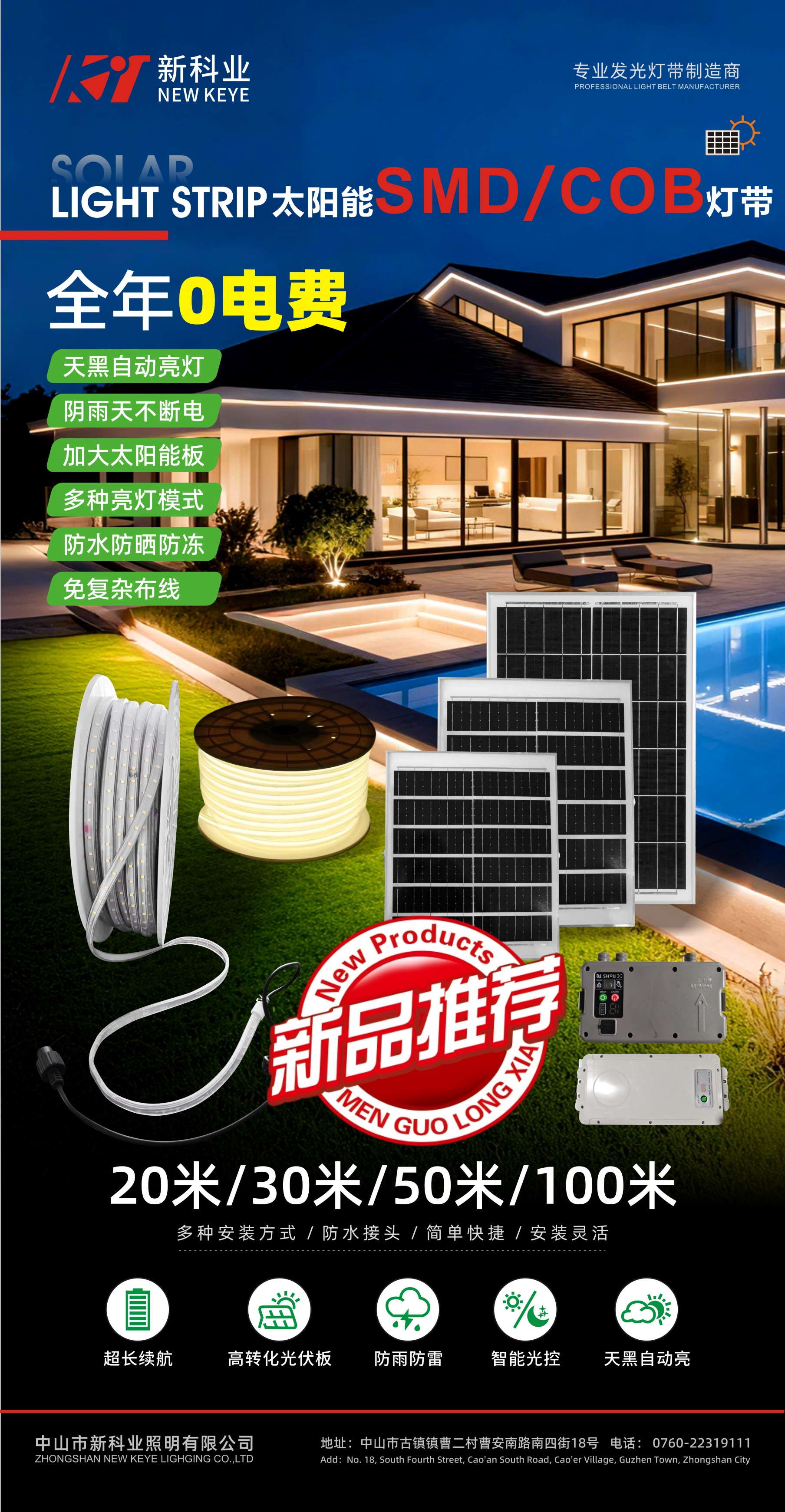 中山市科业照明有限公司位于“中国灯饰之都”--古镇。本公司专业致力于LED其应用新产品开发、设计和生产销售。公司拥有LED封装生产线,LED灯饰成品车间,和一支优秀的员工队伍及一批稳定的科研技术人员。 目前公司主要生产产品有:太阳能灯带,太阳能皮线灯,cob灯带,透镜灯带,高低压SMD灯带。 产品主要应用于:户外节能装饰照明、室内节能装饰照明、商场、酒店、家居、城市大厦、楼宇、桥梁、广场公园景观亮化工程、道路亮化等等。