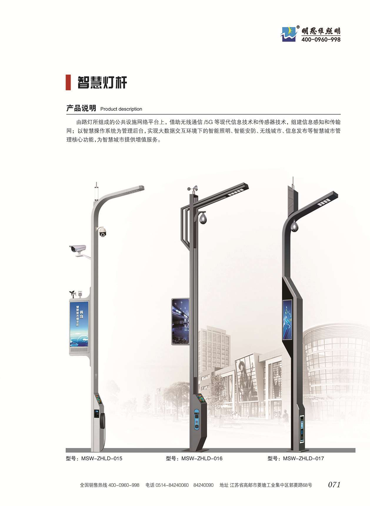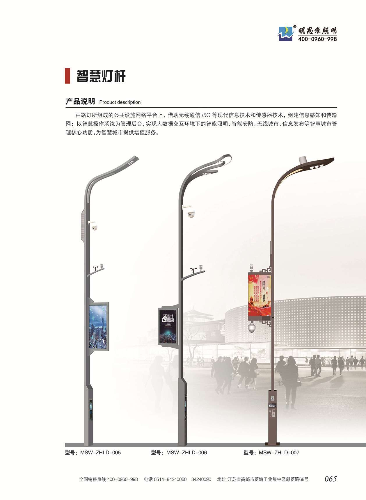 智慧l路灯以灯杆为核心,在实现智慧照明、绿色照明的基础上,拓展视频监控、语音广播、5G基站、wifi覆盖、空气质量监测、报警求助、信息发布、广告互动等功能,实现硬件可植入,软件可叠加,应用可拓展,是“互联网+物联网+智慧城市”的有效体现,是智慧城市实现物联网感知平台的有效载体。